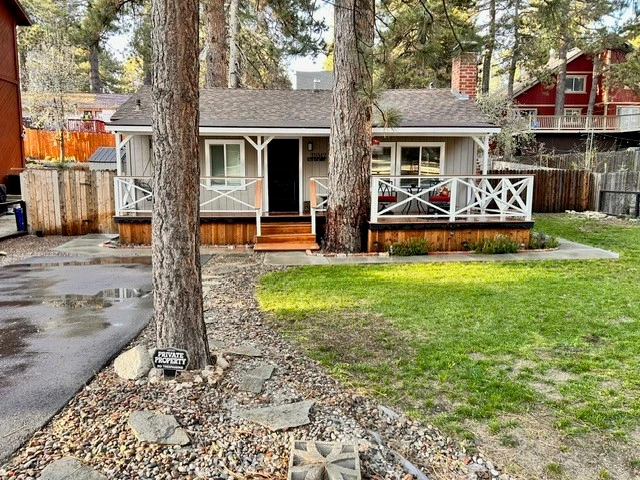Charming Furnished Cabin Retreat in Running Springs Welcome to your perfect mountain escape! This light, bright, and airy single-story cabin is being sold fully furnished and move-in ready. Nestled among the trees, it offers a peaceful and private setting while remaining easily accessible just off the main road. Step inside to find an open, welcoming interior filled with natural light. The cabin features a spacious front porch—ideal for entertaining or simply enjoying the crisp mountain air. Outside, the fully fenced, grassy yard provides a safe and serene space for pets, kids, or relaxing afternoons in the sun. Thoughtfully designed with accessibility in mind, the property includes level paths and entry points, making it easy to enjoy for everyone. Whether you're looking for a full-time home, a weekend getaway, or a turnkey vacation rental, this cabin checks all the boxes. Don’t miss the chance to own a slice of mountain paradise in Running Springs!