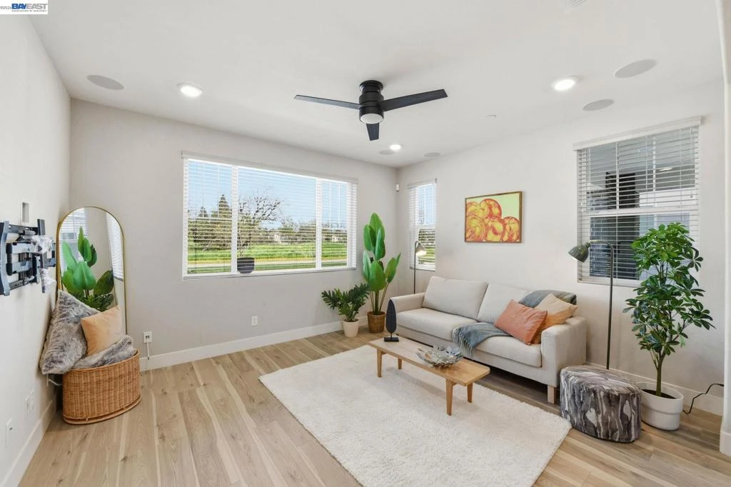 Contemporary living at The Cove! Welcome to this bright and inviting 3-bedroom, 3-bath home spanning 2,238 sq ft in one of Natomas' finest master-planned communities. Almost-new construction w/ $70K+ upgrades throughout and ready for immediate move-in!The main level features a sunlit living room w/window-lined walls, stunning wood-themed flooring, recessed lighting, and integrated speakers. A first-floor bedroom with full bath and attached patio provides flexibility for guests or multi-generational living. The kitchen showcases quartz countertops, full-height backsplash, island w/sink and breakfast area, professional-grade stainless steel appliances, and abundant cabinetry. The dining area opens seamlessly to the large landscaped backyard with an artificial grass area perfect for entertaining or relaxing.Upstairs, plush carpeting on the stairs leads to an oversized loft with fantastic local views and private balcony overlooking the backyard; perfect for watching the sunset. The luxurious primary suite offers a serene retreat with ensuite bathroom featuring double sinks, separate shower stall, soaking tub, and huge walk-in closet. Upstairs laundry room with sink adds functionality. Solar owned. Low HOA incl. The Cove Cornerstone clubhouse with in/outdoor gymJunior Olympic Pool.