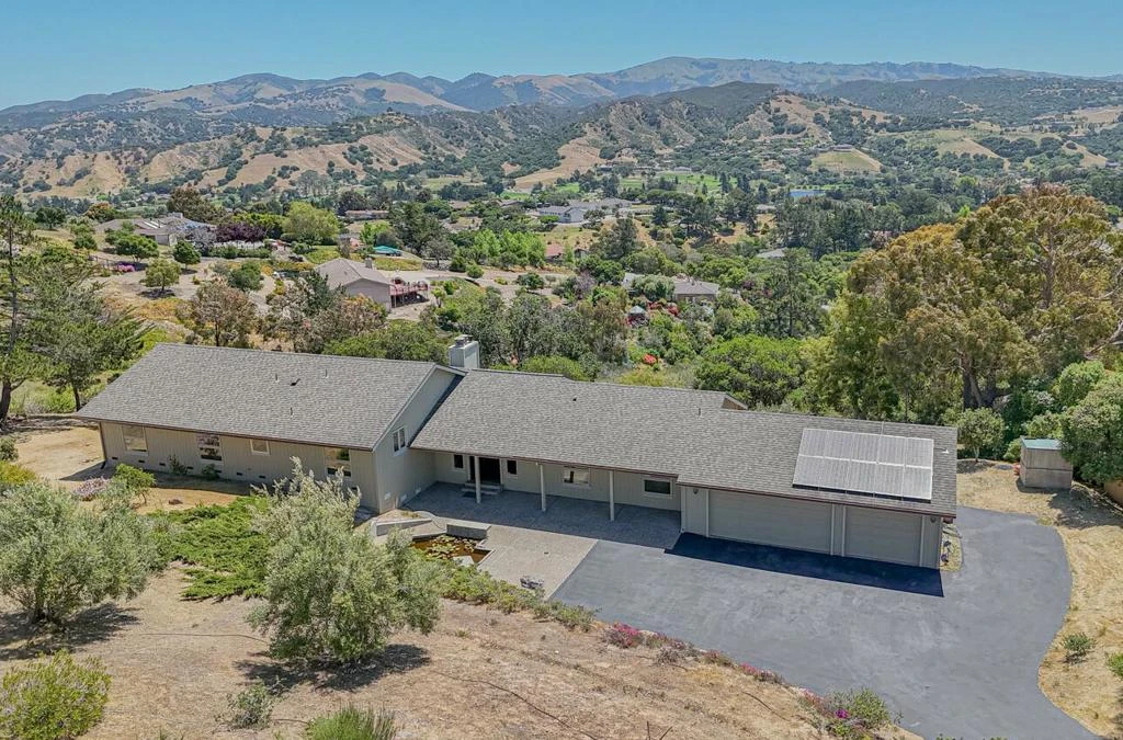Incredible one of kind views on this mostly single-story beauty on a usable over 2 acre lot! John Steinbeck must have been sitting in this house when he wrote his famous book, Pastures of Heaven! This home is perfectly placed with a premium on privacy and preferred southern sun exposure giving amazing natural light. Oak flooring is leading you to large rooms with lots of windows to enjoy sunrises and sunsets. There is a large primary suite with a wood ceiling, fireplace, walk in closet and sliding glass door out to a beautiful deck and hot tub area stretching almost the width of the house. The primary bath has been completely upgraded. Just down the hall is an amazing en suite perfect for guests, and with upgraded bath as well. Functional kitchen with a window to the world and a breakfast area. The large formal dining room with a large picture window is surely a place to gather and discuss the day or the beautiful surroundings. Just a few steps up, you will find 3 large rooms with a full bath, with room for everyone and privacy. This home draws you out to the vast outdoor space surrounded by mature Oaks and Eucalyptus trees, and with the wonderful colors of nature. Plenty of private parking for everyone with room for an RV. To top it off, this one has owned solar!