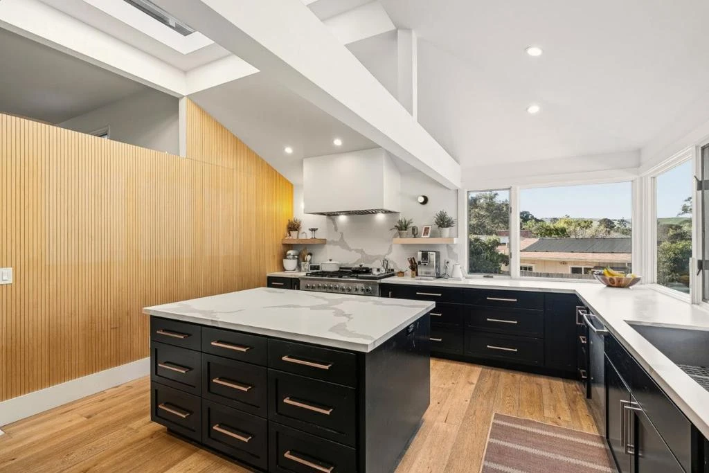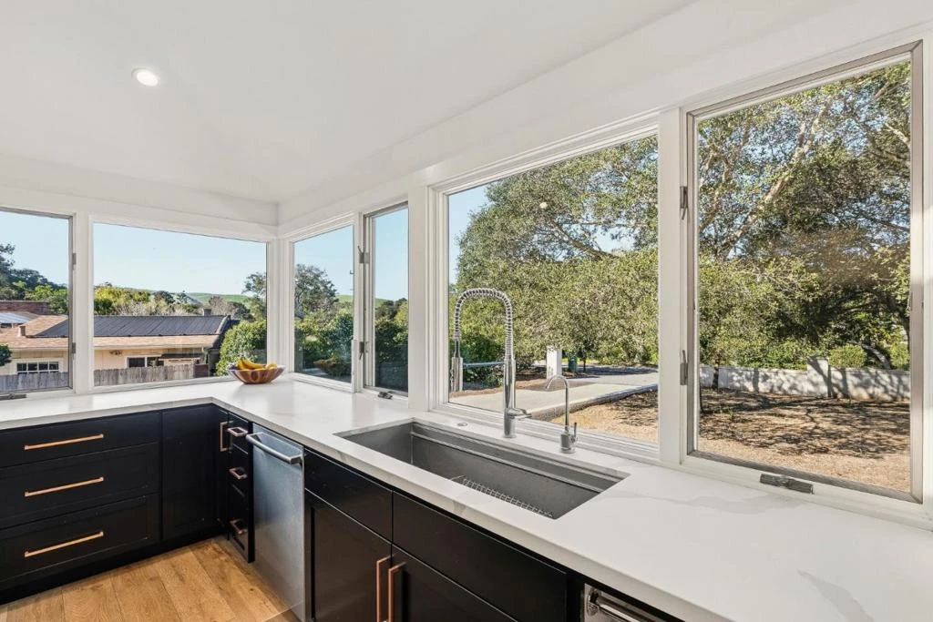 Welcome to Paseo Hermoso in the highly desirable San Benancio community along the Highway 68 corridor. Known for its sunshine, great weather, and family friendly atmosphere with access to highly regarded schools, this location is one of the most sought after areas in the valley. This sleek contemporary home sits among beautiful oak studded surroundings and blends modern design with comfortable living. The light filled kitchen features chef grade appliances, mountain views, and two oversized islands flowing into a spacious dining area ideal for entertaining. The main level offers a ground floor bedroom and full bath along with a private tucked away office or gym space. Upstairs, the primary suite includes two walk in closets and a luxurious bath with soaking tub and walk in shower. The backyard offers a large sprawling lawn with space for play and entertaining plus bocce, horseshoes, and a built in trampoline. A circular driveway paired with a second driveway provides abundant parking and creates a striking first impression
