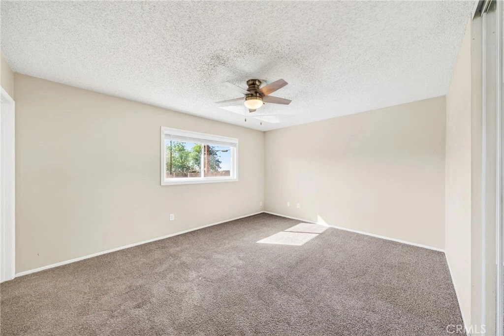 Welcome to this charming single-story home situated on a spacious corner lot in an established San Bernardino neighborhood. With mature trees providing shade and curb appeal, this property offers comfort, functionality, and plenty of potential. Step inside to find freshly updated interior paint, plush carpeting throughout the living areas and bedrooms, and an abundance of natural light from large windows. The spacious living room flows seamlessly into the dining area, creating an open and inviting layout ideal for both everyday living and entertaining. The kitchen features ample cabinetry, generous counter space, classic tile countertops, a gas cooktop, and a functional layout that offers great storage and workspace. Just off the kitchen, a dedicated laundry area adds everyday convenience. This home offers generously sized bedrooms, each complete with ceiling fans, mirrored closet doors, and large windows for natural light. One bedroom features extensive built-in shelving, perfect for a home office, library, or creative space. The primary suite includes ample closet space and an en-suite bathroom with a walk-in shower. A second full bathroom offers dual sinks and a shower/tub combination. Outside, the expansive yard provides endless possibilities — whether you envision creating an outdoor entertaining space, adding landscaping, or simply enjoying the shade from mature trees. The corner lot location enhances privacy and curb presence. Conveniently located near schools, parks, shopping, and major commuter routes, this property is a fantastic opportunity for homeowners or investors alike. Don’t miss your chance to own this well-maintained home with space, charm, and room to make it your own!