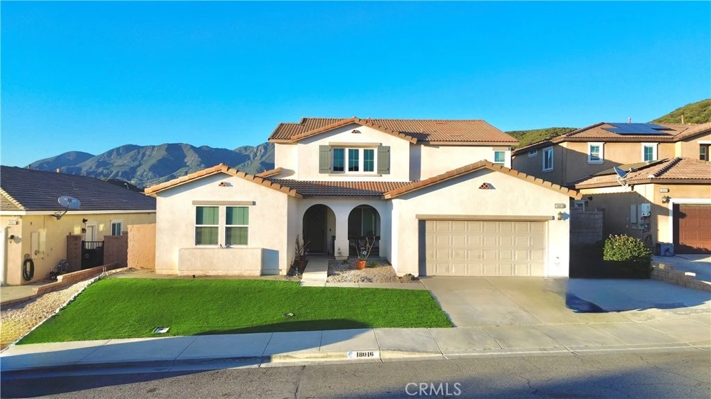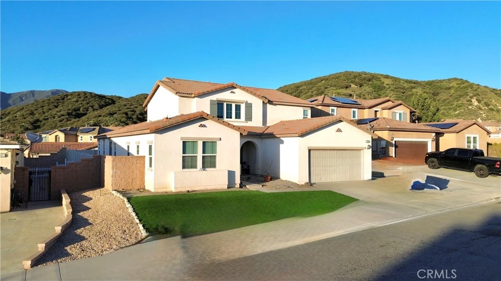 Welcome to Rosena Ranch Living – Spacious, Elegant, and Exceptionally Located. Nestled in the highly sought-after Rosena Ranch community in San Bernardino, this beautifully designed two-story home offers comfort, functionality, and modern style across 3,156 square feet of living space. Built in 2017, this 4-bedroom, 3.5-bathroom home is ideal for multi-generational living or those seeking ample space to relax and entertain. Step inside to discover an open-concept floor plan that seamlessly blends the living room, dining area, and kitchen, perfect for hosting gatherings or enjoying cozy nights at home. The kitchen is the heart of the home, featuring generous counter space, modern cabinetry, and a layout that flows effortlessly for everyday living. Designed with convenience in mind, the home features two main bedrooms, including one downstairs with an en-suite bathroom—ideal for guests, extended family, or accessibility needs. Upstairs, you'll find a large loft, ideal for a media room, home office, or kids’ play area, along with the second main bedroom featuring its own private bath. Additional highlights include: Central air and heating for year-round comfort, attached garage, tile roof and low-maintenance landscaping, Located on a 6,499 sq ft lot. A unique opportunity to own in a desirable, well-maintained neighborhood - Don't miss your chance to make this beautiful residence your forever home in Rosena Ranch—a community known for its peaceful surroundings, mountain views, and easy access to schools, parks, and freeways.