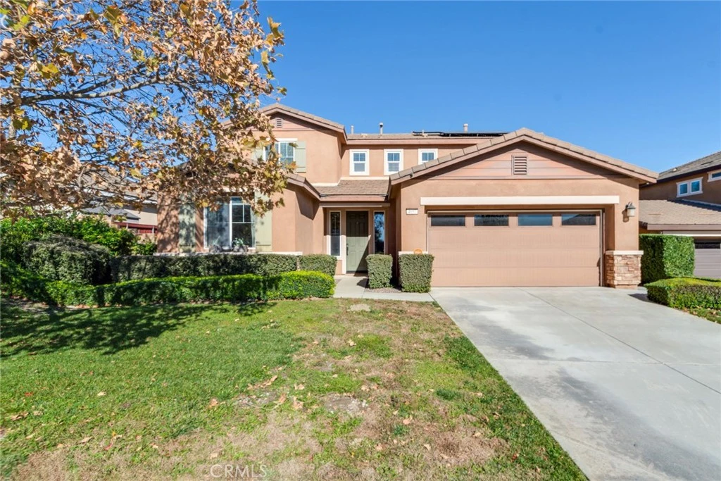 5 bedrooms, 3 bathroom home with 1 bedroom and full bathroom downstairs located in the Rosena Ranch Community. Large, flat lot with plenty of room for entertaining! 3 car (tandem garage). Walk in the front door and enjoy a living room with separate dining room, and continue through to the open and spacious living room that opens to the kitchen. Large kitchen, and island with granite counters, recessed lights, lots of cabinet space. Enjoy neutral, tasteful flooring throughout downstairs, and stairs, and carpeting throughout the bedrooms. Upstairs laundry room. Best pricing for the sq footage. Buyer to take over solar/solar payments(owned). Enjoy being part of the Rosena Ranch community with a pool, spa, clubhouse, parks, bike trails, walking, barbecues, and lots of planned activities for the community. Low HOA dues. This home is seeking it's next owner.