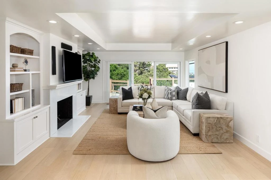 Stunning single-level home with mesmerizing, panoramic views of the Bay and hills of San Carlos. The property features effortless living, no steps and flat front, back, and side yards, creating a rare combination of accessibility and outdoor enjoyment. An expansive view deck, perfect for relaxing or entertaining while soaking in the breathtaking scenery. The outdoor space offers a built-in BBQ and stone patio, making it ideal for hosting gatherings against a spectacular backdrop. Beautifully updated in 2023, the light-filled interior has wide-plank light floors, quartz countertops, updated bathrooms, built-in closets, and restyled built-ins. A see-through fireplace with updated stone adds warmth and elegance between living spaces. The designer white kitchen is functional and sophisticated, featuring a Wolf cooktop, stainless steel appliances, and workspace. Spacious utility room with newer washer and dryer offers storage and convenience. Additional highlights include a two-car garage with epoxied flooring, solar system w/ battery backup, electric vehicle hookup, sink, and upper storage. This light, bright, and beautifully upgraded view home offers a rare opportunity to enjoy modern comfort, effortless indoor-outdoor living, and some of the most captivating views in San Carlos.