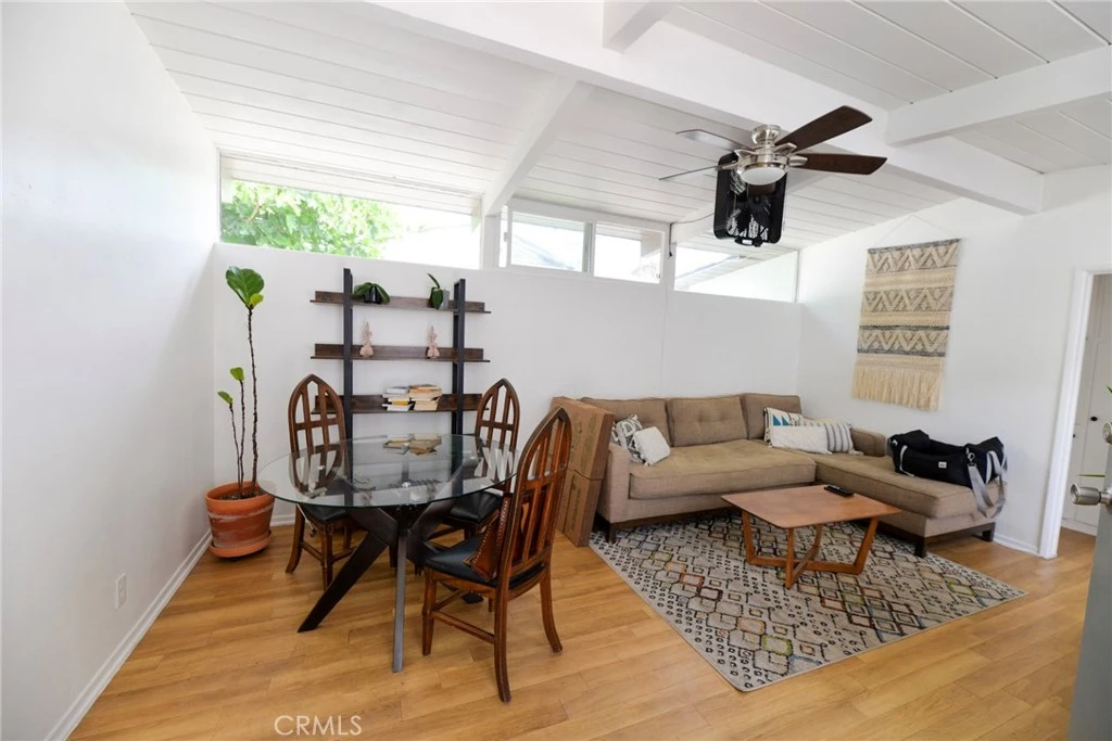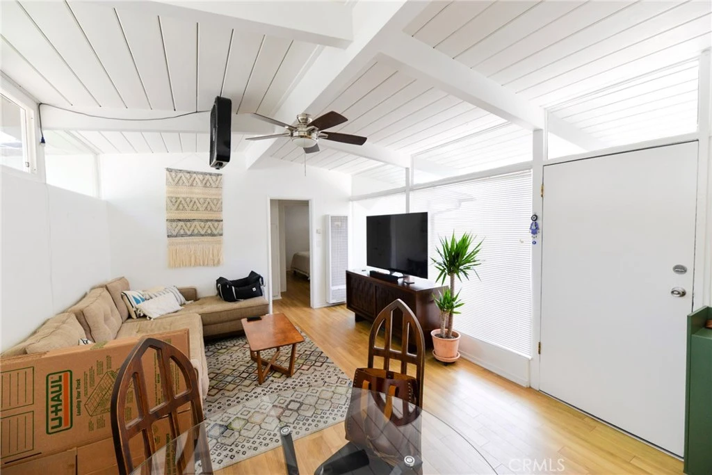 Designed by famed architect Chris Abel, this beautifully maintained mid-century modern beach triplex offers a rare blend of architectural character and prime coastal location. Apartment C features a bright and open two-bedroom, one-bath floor plan with vaulted ceilings and dramatic floor-to-ceiling windows that flood the space with natural light. Thoughtful design details highlight the home’s timeless style while creating an inviting, airy atmosphere. Residents enjoy access to a spacious shared community deck with peek-a-boo ocean views—perfect for relaxing or entertaining—as well as a community laundry room, soft water filtration system, and a private one-car garage at street level. Ideally located within walking distance to the beach, the San Clemente Beach Trail, local shops, and dining, this exceptional residence delivers the best of Southern California coastal living.