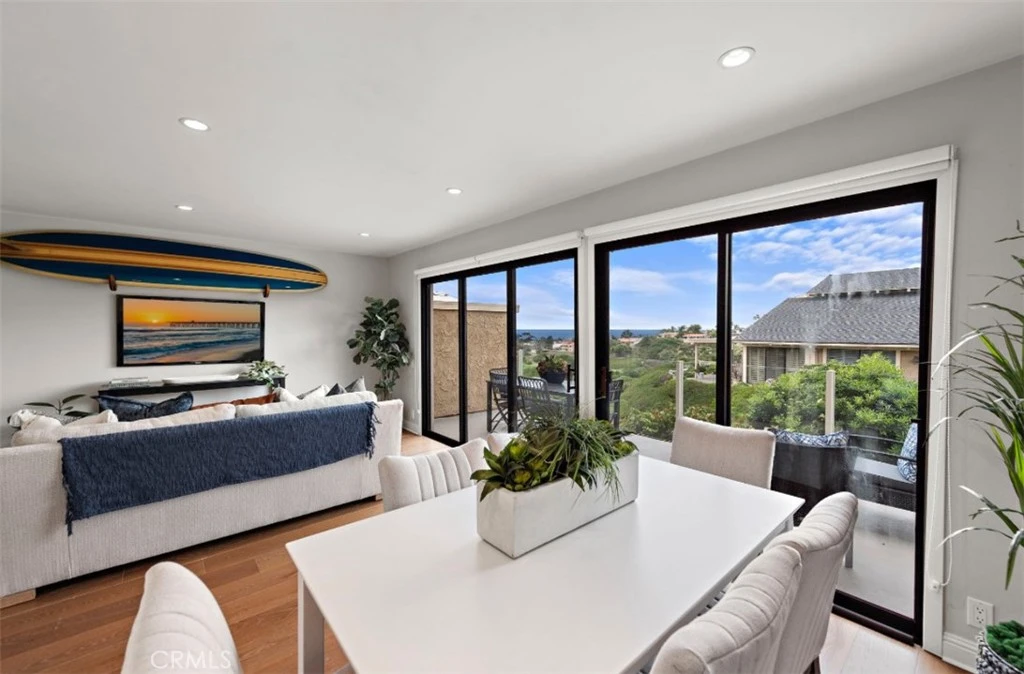 For ever Sunsets, Catalina Island and Ocean views. Step into this beautiful remodeled 2 bedroom condo located in the highly desired Presidential Heights I Community. Enter into an Open Living space on the first level that connects the remodeled spacious gas stove kitchen with the dinning and living area all in beautiful laminate wood floors. Enjoy your morning coffee or evening sunsets through the large glass sliding doors connected to a large patio deck area with Ocean views. On the upstairs you will find 2 bedrooms, both are sizable with higher ceilings. Walk in closet, Ocean & Golf views from the primary bedroom. Large second bedroom is great for work at home or guest bedroom with an expansive balcony to enjoy the forever ocean breeze. Additionally this home offers a direct access 1 car upgraded attached garage and a tankless water heater. This home is a great work from home space or riding the morning surf. Located just a couple of miles from the beach, World class surfing, down town San Clemente and beautiful golf course. Coastal Living at its best. This one wont last!