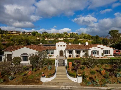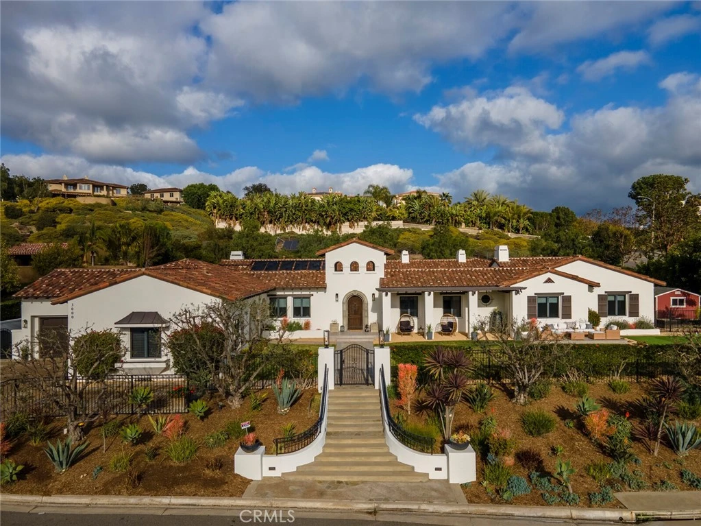 Completely reimagined and remodeled , this stunning custom Spanish Single Story compound in the exclusive Forster Estates enclave of Forster Ranch in San Clemente is ready to dramatically enrich your lifestyle. Offering panoramic hill views and glimpses of the ocean, this sprawling estate offers the advantages of a coveted corner homesite that extends 1.2 acres and hosts an inviting front yard with sunny patio, a gated motorcourt with a five-car garage. An impressive colonnade leads to the grand central courtyard with fireside seating and dining patio. Approximately 7,559 square feet of living space, this single-level design is distinguished by sophisticated soft-contemporary style at every turn. Enjoy countless fireplaces, Spanish tile and wide-plank wood flooring, romantic archways, high ceilings and exposed beams, custom lighting and high end fixtures and finishes. Nearly every room opens to the outdoors, including the living and dining rooms, an office, a bonus/media room, a gym/golf simulation room, and a brand-new kitchen with butler’s pantry, custom cabinetry, quartz countertops, an oversized double-waterfall island, a nook with built-in seating, an extra-wide Viking range, a wine refrigerator and a double built-in Fisher Paykel refrigerator. Enjoy the comfort of six en suite bedrooms, five full and three half baths, An opulent primary suite with a fireplace, sitting area, patio access, a freestanding tub, separate vanities, and two extra-spacious walk-in closets with furniture-caliber built-ins. The resort-caliber backyard showcases a swimming pool and spa, and an entertainment pavilion with a grill, kitchen fireplace, after-swim shower and a bathroom. A custom putting green, in-ground trampoline and sports courts are also featured. Residents of Forster Ranch enjoy parks, trails, and easy access to shopping centers, beaches and San Clemente’s historic pier, and Dana Point Harbor. ( Solar owned and Tesla charging outlet) Professional plans for a Pickle Ball/Sport court and fire pit area on upper level of backyard, HOA approved