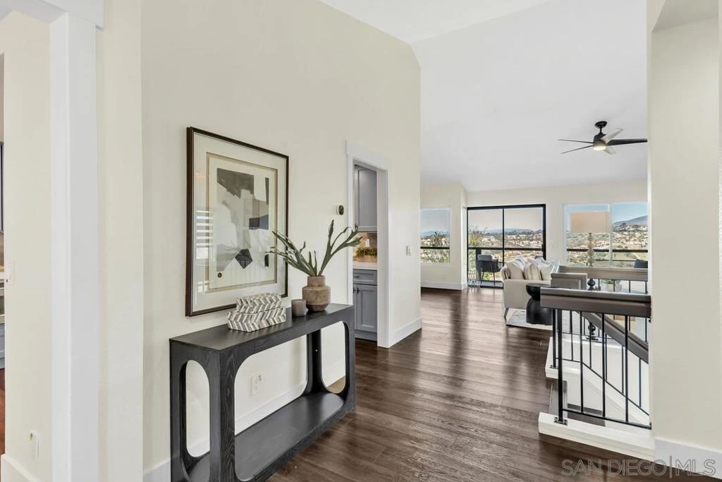 This stunning twin home lives like a detached residence, offering unmatched privacy with only one shared wall and unobstructed panoramic views of Los Peñasquitos Canyon. Enjoy the beauty of nature and local wildlife from your serene, private backyard—perfect for relaxing or entertaining. Inside, the home has been thoughtfully upgraded throughout. The newly remodeled kitchen features elegant suede-finish countertops, newer stainless steel appliances, and picturesque views that make everyday living feel extraordinary. Both bathrooms have been tastefully updated, and durable luxury vinyl plank (LVP) flooring runs seamlessly throughout the home for a modern, cohesive look. Major system upgrades include a brand-new HVAC system, a new water heater, and owned solar with a backup battery, delivering energy efficiency, reliability, and long-term savings. The exterior is designed for easy, sustainable living with low-maintenance turf and water-wise landscaping. Enjoy outdoor living on Trex decking at both the front patio and rear balcony, complete with sleek glass railings that maximize the incredible views. Ideally located just one mile from popular restaurants and shopping, this home offers the perfect balance of tranquility and convenience.