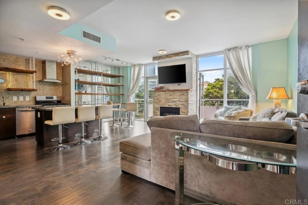 $500 off first month's rent with a one year lease. Experience urban sophistication in this spacious, partially furnished 2-bedroom, 2.5-bathroom condo at Treo, located at 1277 Kettner Blvd, Unit 300 in the heart of downtown San Diego. With 1,265 square feet of living space, this rare two-story layout offers excellent separation between living and sleeping areas—an uncommon feature in downtown residences. The modern kitchen is outfitted with stainless steel appliances, and the unit includes in-unit laundry, central heating and air conditioning, and city views for year-round comfort and style. A convenient half bath is located on the lower level, ideal for guests. This home offers dual street access, with two staircases located just outside the front door—providing quick entry to A Street and easy access to the Kettner lobby and Kettner Boulevard. It’s also situated on the beautifully landscaped garden-level courtyard, offering immediate access to the pool, fitness center, and other amenities. The combination of street-level convenience and resort-style features is truly unique in downtown living. One assigned garage parking space is also included, adding to the convenience of this urban retreat. Residents of Treo enjoy access to a range of upscale amenities, including a heated lap pool, spa, fitness center, BBQ areas, and a clubhouse. This home combines contemporary comfort with vibrant city living, making it a standout choice for those seeking convenience, style, and downtown energy.