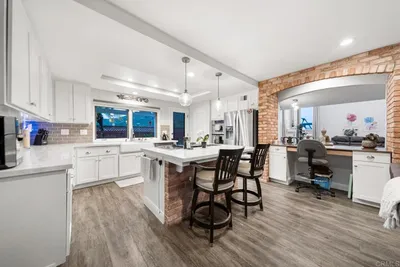 Rare opportunity in the Montelena community! This beautifully maintained cul-de-sac home offers stunning sunset and Battle Mountain views, paid-off solar, and a spacious 5-bedroom, 3-bath layout with a bedroom downstairs — perfect for guests or multi-gen living. Enjoy abundant natural light from Andersen two-story living room windows and a large view window in the primary suite. The primary bath features a remodeled walk-in shower and premium bidet, while the upstairs office and walk-in closet have been thoughtfully remodeled for maximum functionality. Step into your private backyard retreat with a pool, usable yard space ideal for entertaining or gardening, and mature high-producing citrus trees. Additional upgrades include a recently replaced water heater, energy-saving lighting throughout, and a large garage with built-in workbench and extra storage. Homes in Montelena rarely come available — don’t miss this move-in-ready home with views, efficiency, and luxury touches in one of San Diego’s most desirable communities