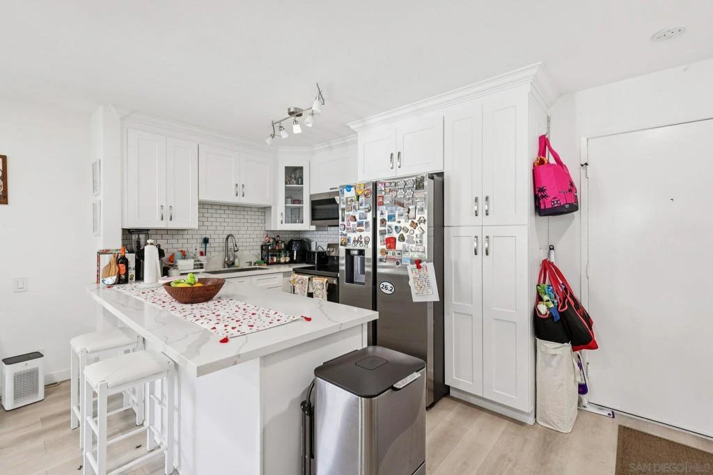There's many gorgeous condos & this one's no exception. But few compare to the impeccably maintained Plaza condos resort living. Pool, spa, sauna, billiards, movie theatre, tennis courts, gym, library, bbq's & more. Unit is light-filled with abundant white marbled granite counters w/ample prep space & pull-up seating, white tile backsplash, stainless steel appliances. Split a/c. Baths feature modern vanities. Dual primary suites w/walk-in closets. Large private patio. Serene pool view. Large deck. Gated & security onsite. The dues are a bit higher than average but at The Plaza, you can see where your dues are going. The roofs of this building was recently replaced. There are lots of amenities and incredibly well maintained. There are security people at the property in addition to being gated. Dog-potty turf within complex. Walking distance to Vons Shopping Center. 11-Blocks from beach.