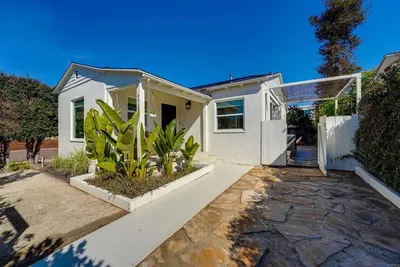 Welcome to Normal Heights! This stunning 1920s Spanish bungalow–Craftsman blend is nestled in one of San Diego’s most sought-after, walkable neighborhoods with ample street parking. Enter through the original front door and step into a warm, inviting interior featuring original hardwood floors, cove ceilings, original-style front windows, built-in dining room cabinetry, and a classic fireplace with a Spanish-style mantel housing a wood-burning fireplace. The updated kitchen is ideal for everyday living, offering stainless steel appliances, quartz countertops, and modern floor-to-ceiling subway tile. Recent upgrades include completely re-designed landscaping in the front yard featuring fruit trees, native California plants, and a low-water irrigation system, as well as a fully restored original fireplace, new paint in the primary bedroom, plumbing upgrades in the kitchen, and a mini-split HVAC system. Enjoy multiple outdoor living spaces, including a fully fenced-in front yard, a side yard great for barbecues and entertaining, and a private backyard retreat featuring a deck and relaxing hot tub/spa. The surrounding low-maintenance turf is perfect for pets, while a long driveway offers parking for up to two vehicles, plus an additional space in the detached one-car garage—ideal for storage or hobbies. Located in the heart of Normal Heights, you’re just steps from beloved local favorites like Madi, Bica Coffee, and Blind Lady Ale House, along with countless cafes, restaurants, and neighborhood gems. With Kensington just blocks away, a 13-minute drive to the airport, 11 minutes to Petco Park, and only 5 miles to Balboa Park, this home truly embodies the best of classic charm, walkability, and California living at its finest.