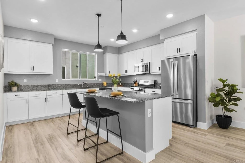 Welcome to sought-after Playa Del Sol community, located in the desirable Ocean View neighborhood. Built in 2021, this stylish 4-bedroom, 3.5-bath townhome offers 1,777 sq ft of thoughtfully designed living space in a gated community packed with resort-style amenities. Home includes 4 Bedrooms, 3.5 Baths and 1 bedroom + full bath on the first floor ideal for guests, multigenerational living, or a home office. Light filled open-concept layout with spacious living and dining areas. Chef inspired kitchen featuring stainless steel appliances, a large center island, and a walk-in pantry. Washer & dryer conveniently located upstairs. Private balcony off living room. Attached 2-car garage.This home is equipped with solar panels, offering energy savings. The new buyer will take over the existing solar contract. Seller's currently pay no electric bill. Community Amenities include resort-style pool & jacuzzi, clubhouse & fully equipped gym, gated entry for added privacy and peace of mind. Prime Location, Minutes to major freeways and multiple military bases. Close to shopping, dining, movie theaters, and everyday conveniences. Near Sesame Place, concert venues, and Movie theater and let's not forget that quick drive to the beach, sun, sand, and ocean breezes just minutes away. This townhome blends modern comfort with an unbeatable San Diego lifestyle, perfect for VA buyers, commuters, or anyone looking to live close to it all. "Buyer and buyer’s agent to verify all information, including Mello-Roos, square footage, and any other details, as part of their due diligence.