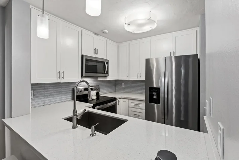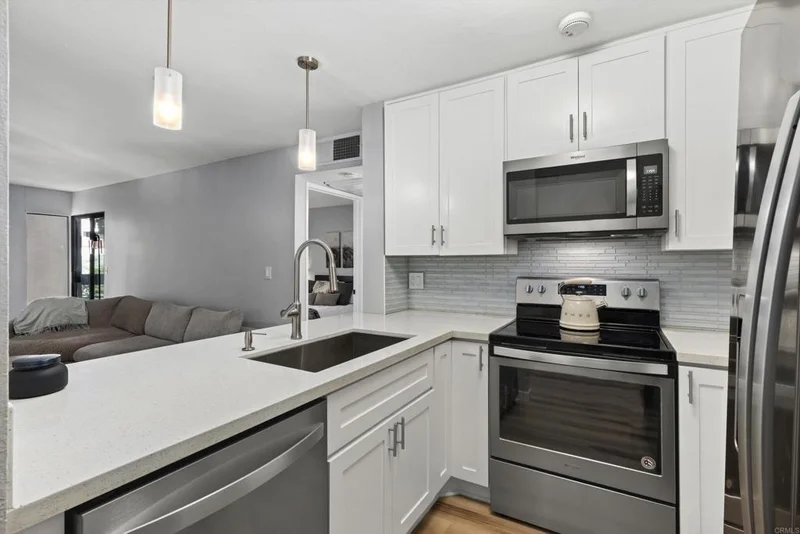 Welcome home to this beautifully remodeled 1-bedroom, 1-bath condo offering 644 square feet of stylish, low-maintenance living in the heart of Mission Valley. Perfect for a first-time home buyer, this well-located unit features peaceful views of the interior courtyard with a lovely pond and gazebo and is tucked away in a quiet area of the complex—away from nearby construction and Friars Road. The remodeled interior showcases luxury vinyl plank flooring, a cozy gas fireplace, and an updated kitchen with quartz countertops. The bathroom features tile in the shower, while the bedroom includes a walk-in closet for generous storage. An additional storage closet in the hallway near the kitchen adds even more everyday convenience. The AC unit was replaced in 2018, providing efficient, year-round comfort. This home includes two parking spaces and two separate storage areas, with all appliances conveying including the washer and dryer, making it truly move-in ready. Enjoy resort-style community amenities including an oversized pool, spa, exercise room, and sauna. The HOA covers cable, Wi-Fi, water and trash, helping keep monthly expenses predictable and stress-free—an ideal setup for first-time buyers. Located just steps from Fashion Valley Mall, with easy access to shopping, dining, transit, and major freeways, this condo offers an unbeatable combination of location, comfort, and value. A rare opportunity to stop renting and start building equity in one of San Diego’s most desirable neighborhoods. Call today to see this great home! VA approved complex.