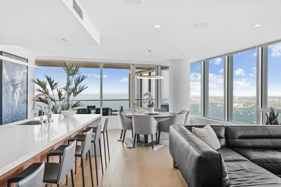 Perched on the 14th floor in the coveted “02” stack at The Meridian in downtown San Diego’s original and most prestigious full-service luxury tower, this beautifully remodeled residence offers sweeping 180-degree bay and ocean views from Mexico to Point Loma. The home features two primary suites, two private balconies, and a sophisticated modern design throughout.