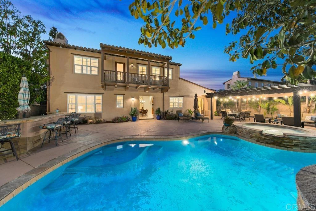 This is more than a home...it’s a lifestyle. Welcome to the best of Santaluz living. This 6BD/6.5BA estate including detached casita in the prestigious gated community of Santaluz. Enjoy a resort-style backyard featuring a sparkling pool and spa, outdoor chef’s kitchen with BBQ, fridge, and sink, plus a fireplace under a trellis for cozy evenings. Light and bright interiors offer an open layout with formal living, gourmet kitchen with granite counters, island to gather, walk-in pantry, breakfast nook, family room with fireplace. Entertaining is effortless with a well-appointed butler’s pantry...ideal for serving or selecting the perfect bottle of wine to enjoy in the elegant formal dining room with its own fireplace.. Spacious en-suite bedroom downstairs, plus oversized primary suite upstairs with balcony, spa-like bath, and large walk-in closet. Car enthusiasts will appreciate the 4-car garage and long double driveway with porte-cochere. One of the garage bays is currently transformed into a game room. The owned solar system adds value and energy efficiency all just steps from a newly renovated exercise park. Santaluz Club membership available for purchase separately with access to golf, spa, fitness, dining, tennis & more.