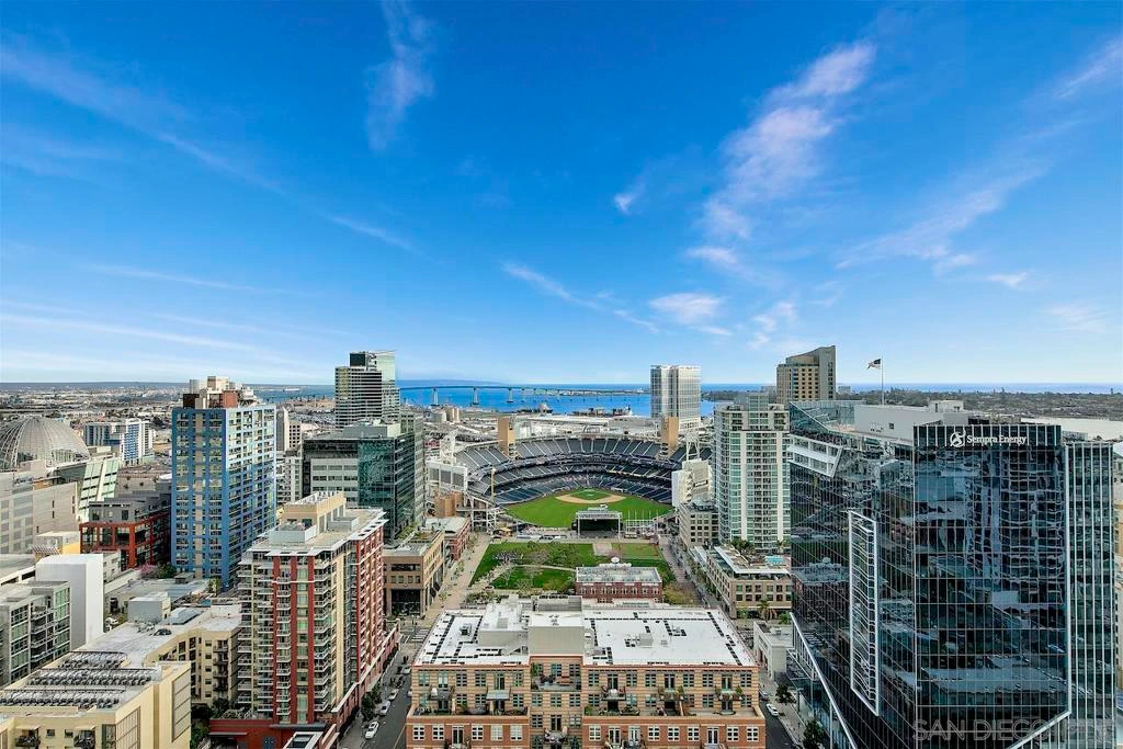 Listed for Lease or Sale, this exceptional 28th-floor semi-penthouse at The Mark offers expansive downtown living with approximately 2,430 sq ft and three ensuite bedrooms. Enjoy sweeping panoramic views of the downtown skyline, San Diego Bay, the iconic Coronado Bridge, and Point Loma, with direct sightlines into Petco Park, home of the San Diego Padres. The spacious floor plan features 10-foot ceilings and floor-to-ceiling windows that fill the residence with natural light while showcasing the spectacular views. One of the home’s most impressive features is the over 400 sq ft private terrace, one of the largest outdoor spaces in the building—ideal for entertaining or creating an urban garden retreat. Two additional balconies are located off the dining area and the primary suite. Additional highlights include generous closet space, a walk-in pantry, wine bar, and designer lighting. This semi-penthouse combines scale, views, and outdoor living in one of downtown San Diego’s premier high-rise communities.