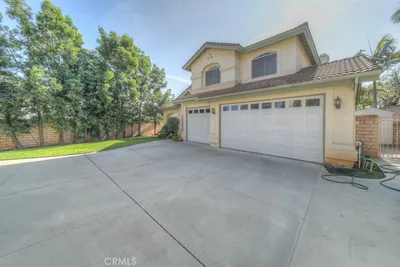 This fully upgraded, stunning custom-built modern home is located in Via Verde Ridge neighborhood of San Dimas. Featuring 6 bedrooms and 4 bathrooms, this residence offers a contemporary yet comfortable lifestyle with exceptional flexibility for multigenerational living or rental income. A permitted addition completed in 2012 includes 2 bedrooms and 1 bathroom downstairs with a separate entrance — ideal as an in-law suite, guest quarters, or rental unit for additional monthly cash flow. Step inside to a bright, open layout highlighted by a grand upgraded elegant custom wrought-iron railings staircase that creates an impressive first impression, leading to a stunning upper-level hallway adorned with a modern cascading chandelier. This striking designer lighting fixture enhances the home’s sophisticated ambiance. Formal living and dining rooms showcase high ceilings and abundant natural light. The recently upgraded gourmet kitchen offers custom cabinetry, a high-end range, and a cozy breakfast nook. An office downstairs can used as the 6th bedroom. Upper level includes 3 bedrooms and 2 bathrooms. The upgraded oversized master suite upstairs features a retreat area, the spa-inspired master bath includes a soaking tub, walk-in shower, dual-sink vanity, & walk-in closet. Situated on an expansive 21,910 sqft landscaped lot delivers California living with 2 covered patios for entertaining, lush greenery, fruit trees and large space for any potentials, permitted enclosed sunroom/Zen room/tatami with split AC system at 368 Sqft NOT included in living Sqft, perfect for yoga, meditation, or can be easily convert to an ADU. Fully paid solar panels offer energy efficiency and long-term savings, attached 3-car garage. It’s convenient access to the 57, 210, and 10 freeways, schools and shops. Major Upgrades: 2012 * Completion of primary suite and upgrades to all bathroom * Tile flooring and veneer wood flooring downstairs; carpet upstairs * Upgraded wrought-iron staircase * Interior and exterior painting * Permitted addition: 2 bedrooms and 1 bathroom. One side of AC system 2013: * professional landscaping 2015: * Permitted sunroom (Tea/Zen room) 2016: * Added patio covers and outdoor BBQ area * Outdoor marble counter w/sink. 2025–2026 Upgrades: * Brand new kitchen * New interior paint * New sliding glass door * New sink counters in upstairs hallway and primary bathroom * New custom fireplace feature wall. Come experience it in person — it won’t last long!