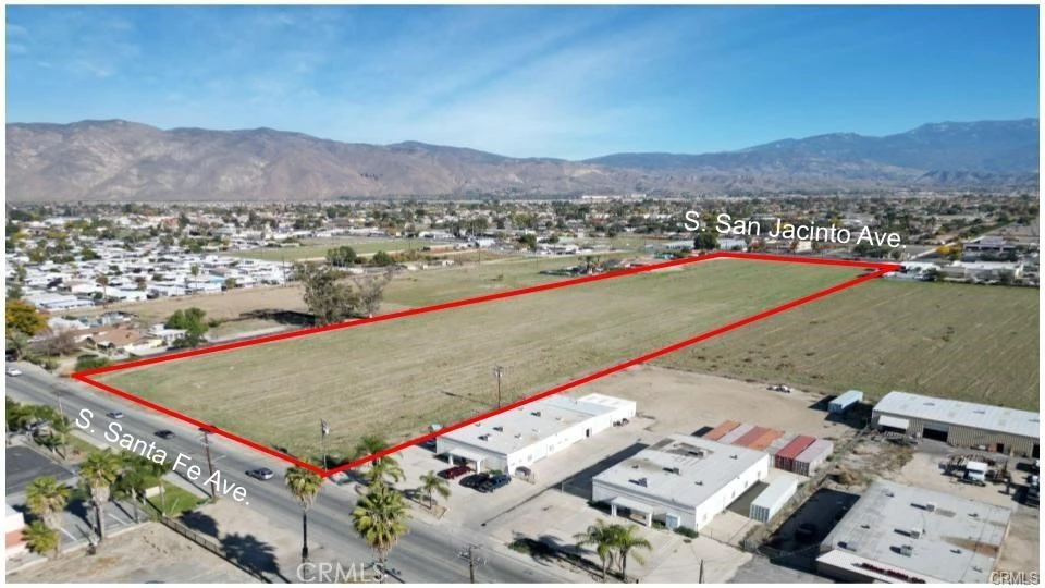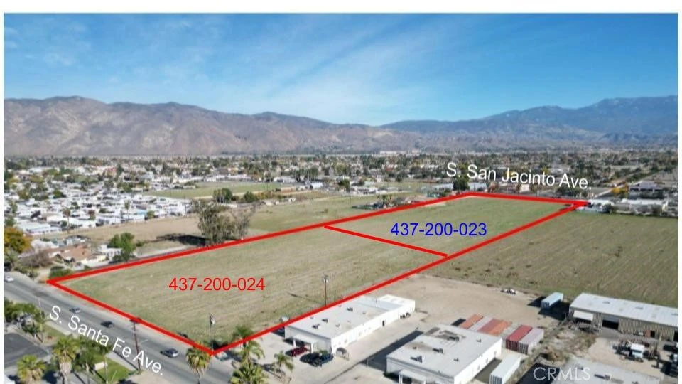 A limited-time Opportunity! Unlock the potential of APN# 437-200-024 on Santa Fe Ave — 4.98 acres of flat, rectangular land zoned I, featuring excellent frontage on a major road. Perfectly positioned just minutes from San Jacinto College and High School, Soboba Casino Resort, and Valley-Wide Regional Park, this property offers unmatched convenience. With easy access to the Perris Metro Link Station (20 miles west) and the fast-growing city of Hemet, the location is primed for growth and opportunity. Even more compelling, the parcel adjoins APN# 437-200-023 (4.89 acres) on San Jacinto Ave, also available for purchase. Combine both properties to secure nearly 10 acres of high-visibility land in a thriving commercial district—an exceptional opportunity to capitalize on strong traffic flow and long-term demand. All information is deemed reliable but not guaranteed. Buyers should verify zoning and permitted uses with the City of San Jacinto.