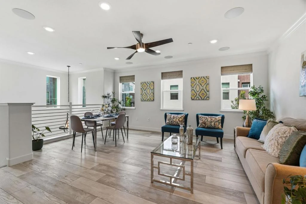 Welcome to a stunning 2019-built(water efficient & energy efficient), contemporary two-story, end-unit filled with natural light in the sought-after neighborhood of Communications Hill. This turnkey 3-bed, 3-bath seamlessly blends style, comfort, and convenience. Highly desirable, this floor plan features a spacious, high-ceilinged entryway on the ground floor that leads inward to a bedroom and full bathroom, ideal space for guests or parents, or as a private home office. Upstairs, living area connects to an open concept modern kitchen with stainless steel appliances and ample storage. The dining area opens to a private balcony for entertaining.The primary suite includes a walk-in closet and spa-like bathroom. Laundry is conveniently located near the bedrooms. Wonderful features include recessed lighting, a tankless water heater, water softener, water filter, Main power panel(200Amps), EV charge readiness, and 2 car garage attached. Close to Hwy 87/85/101, shopping at Costco, Safeway, Ranch 99, and Target. Easy commute to eBay, Netflix, IBM, AMD, KPMG, Zoom and more tech campuses.