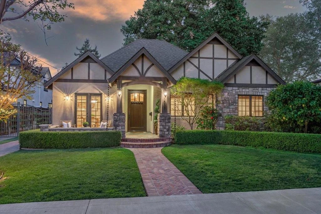 Storybook Tudor on one of Willow Glen's most iconic streets "Cherry Avenue", custom built in 2011 by Bella Casa Builders, this dreamy single story masterpiece boasts 4 bedrooms, 2.5 bathrooms, 2,311 sq.ft., plus a 155 sq.ft. basement perfect for additional storage and a 441 sq.ft. detached 2-car garage with an automatic LiftMaster privacy gate. Formal entry with gleaming hardwood floors, and an Inviting formal dining room with French doors that open to the front porch create seamless indoor/outdoor living. The gourmet kitchen shines with natural stone countertops, Bertazzoni gas range, stainless steel farmhouse sink, a breakfast nook for casual dining and bar seating is perfect for entertaining. The kitchen opens up to the living room creating an open air space featuring a gas fireplace with stacked stone design and a french door to the private backyard. Luxurious primary suite with spa-like bath and custom walk-in closet. Serene backyard with custom paver stone patio with lounge and dining area. Curated pergola with manicured grape vine over the garage and an espalier drapes the driveway with Pear trees, Fuji, Red Bartlett, Braeburn apple, Comice and Gala Apple and a lemon tree. Stroll to downtown Willow Glens Lincoln Avenue shops & restaurants, walk to schools and parks!