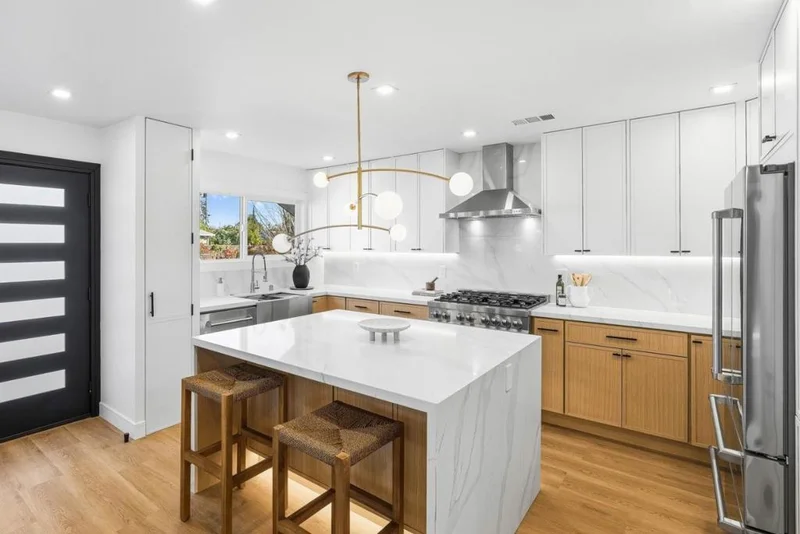 This beautifully remodeled Cambrian residence has been thoughtfully re-built with attention to detail. The open concept floor-plan offers 3 beds/2 baths, highlighted by a chef's kitchen with mini shaker cabinetry, Z-Line appliances, a wine cooler, and a waterfall island for casual dining. Major upgrades provide lasting peace of mind, including a new composite roof, new electrical, plumbing, and HVAC systems. Cat6 wiring runs throughout, and the home is hardwired for an exterior security camera system. The backyard is a true entertainers dream complete with a sparkling pool, multiple lounge areas, covered gazebo, and a built-in BBQ with griddle. Whether hosting summer gatherings or enjoying quiet evenings at home, the outdoor spaces provide versatility. The primary suite offers a private retreat with direct access to the backyard, creating a seamless extension of indoor/outdoor living. Both bathrooms evoke a spa-like experience, appointed with Porcelanosa tile, illuminated niches, and smart bidet toilets. The garage is EV-ready with 220V hookup and an upgraded electrical panel for future solar integration. A modern steel-and-glass garage door leans into the homes contemporary curb appeal. Access to top rated schools including Oster Elementary, Dartmouth Middle, and Branham High.