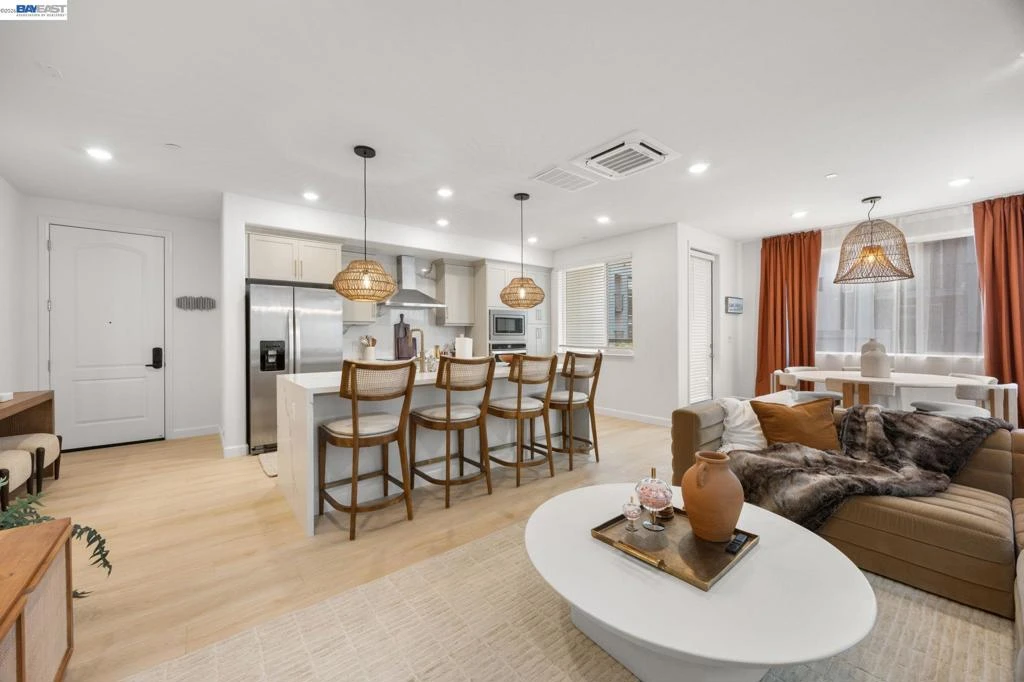 Experience refined modern living in this stunning, like-new condo built in 2022 and meticulously maintained. Offering 1,313 sq ft, this 2-bedroom, 2-bath residence features a bright open-concept layout filled with natural light and elevated finishes throughout. The chef’s kitchen is the heart of the home, showcasing quartz countertops, contemporary cabinetry, premium appliances, and generous prep space—perfect for everyday living or entertaining. The living and dining areas flow seamlessly, creating an inviting yet sophisticated atmosphere. The spacious primary suite serves as a private retreat with a spa-inspired bath and walk-in shower. A well-appointed secondary bedroom and full bath offer flexibility for guests or a home office. Enjoy the added benefit of fully paid solar for energy efficiency and long-term savings, along with convenient in-unit laundry. Ideally located near Santana Row, Downtown San Jose, premier dining, shopping, entertainment, and major commuter routes, this exceptional condo offers the perfect blend of modern luxury, smart living, and prime location.