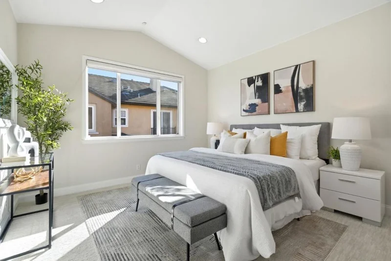 Welcome home to 5050 Ruffino Ter, a beautifully updated 3 bed, 2.5 bath home offering 1,409 square feet of thoughtfully designed living space in the sought after Siena at Saratoga Community with distinguished schools. Showcasing dramatic 14 height ceilings, wide plank engineered hardwood floors, fresh interior paint, modern carpet & recessed lighting, the home offers a bright open & welcoming feel. The updated kitchen features quartz countertops, subway tile backsplash, newly painted cabinetry with modern hardware, new stainless steel appliances & a large island that flows seamlessly into the dining & versatile family/office space with access to a private covered balcony. Upstairs, the vaulted primary suite offers a walk-in closet & spacious bath with dual sinks, soaking tub, and separate stall shower. Enjoy central heating & cooling, interior laundry, an oversized two car attached garage, and a gated front courtyard. HOA amenities include a community pool, BBQ area, exterior maintenance & roof coverage. Ideally located minutes from Apple, Nvidia, major commute routes, shopping, dining, and walking distance to local schools, this home combines comfort and convenience, destinations. An excellent opportunity in a neighborhood with true pride of ownership. This one is a MUST SEE!