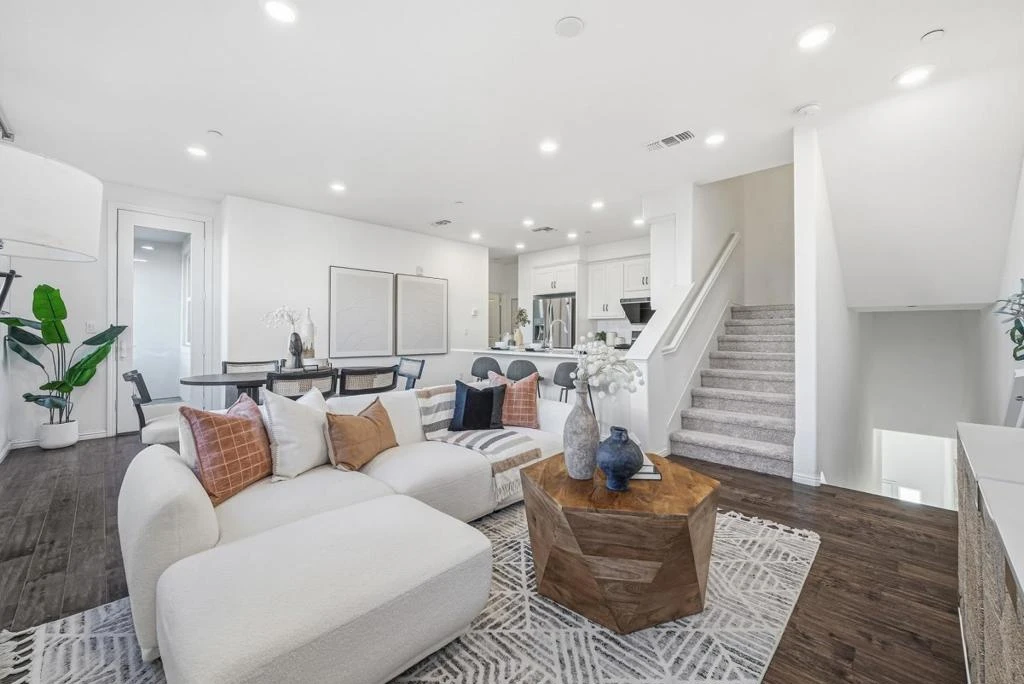 Welcome to this modern townhome offering 3 bedrooms and 3 bathrooms in the convenient Berryessa area, with the entrance facing Newbury Park. The main level features an open floor plan with a light-filled kitchen and family room combination, complemented by recessed lighting throughout. The U-shaped gourmet kitchen boasts large quartz countertops, a stylish backsplash, stainless steel appliances, and ample white cabinetry. The family room opens to a private balcony, and this level also includes a bedroom and a bathroom with a shower-over-tub. Upstairs, you will find two suites. The primary suite offers a spacious bedroom with its own private balcony, a walk-in closet, and a bathroom featuring a double vanity with quartz countertops and a stall shower. The second suite also includes a walk-in closet and a bathroom with a quartz countertop and a stall shower. A washer and dryer are conveniently located on the upper level. Ideally located in Berryessa, this home blends modern comfort, functionality, and everyday convenience. The San Jose BART station, Safeway Plaza, Costco, H-Mart, and 99 Ranch Market are just minutes away, with easy access to Highways 101 and 680. Also it is within walking distance to google and meta shuttle stops! Do not miss this great opportunity!