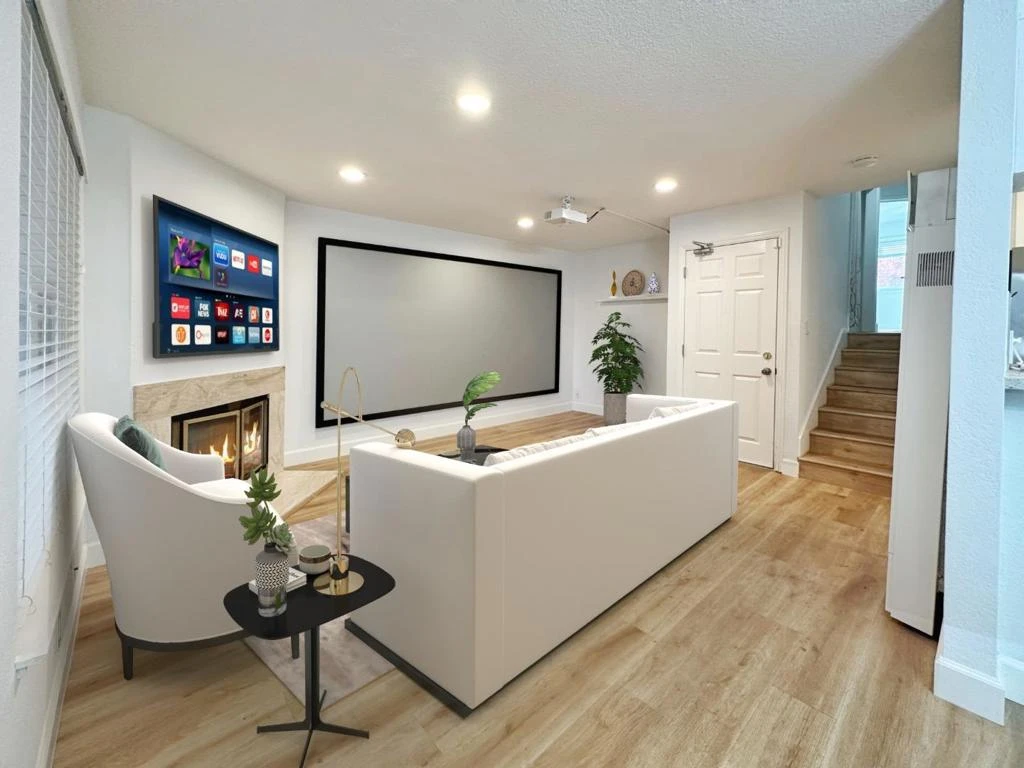 CALL Kevin at 408-477-6638. This single-level unit is located in a quiet complex, with 2 bedrooms, and 2 full baths. This home was completely remodeled in 2018. And it comes with new laminate floors in 2020. The garage floor was upgraded to epoxy. 240V port with a new electric panel in the garage is ready for dryer or electric car charging. Build-in 150 screens with ceiling-attached projector bring you a movie theater-level experience. Perfect location for commuters: the home is extremely close to several popular schools - Stratford school, Challenger school, and Harker are within a 5min drive; Within a 10min drive you can get to shopping stores including Mitsuwa Japanese store, west gate mall, west field valley mall; 10 mins drive to Apple Park, etc.