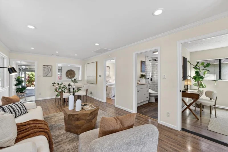 This charming starter home is just moments away from the heart of Japantown in San Jose. Recently revitalized with a freshly painted interior and exterior, the home feels bright and welcoming with designer touches and recessed lighting throughout. The fully remodeled bathroom features an oversized shower and luxury finishes that bring a modern touch while maintaining the homes warmth and character. The real magic lies outside within the spacious lot that offers wonderful outdoor potential. It boasts mature fruit trees, room for raised garden beds, two storage sheds, and a covered patio perfect for outdoor dining, relaxing, or entertaining. The yard also provides flexibility for future possibilities such as expanded outdoor living or potential ADU space (buyer to verify). A long covered driveway provides rare flexibility and can easily accommodate a boat, RV, or multiple vehicles. This home is conveniently located less than a mile from Japantowns vibrant shops, restaurants, and cultural destinations, with easy access to Light Rail, Diridon Station, and Highways 87, 101, 280, and 680. Walk to nearby neighborhood favorites like the 7th Street Sunday Farmers Market and Roy's Coffee while still enjoying quick access to downtown San Jose and major commute routes.