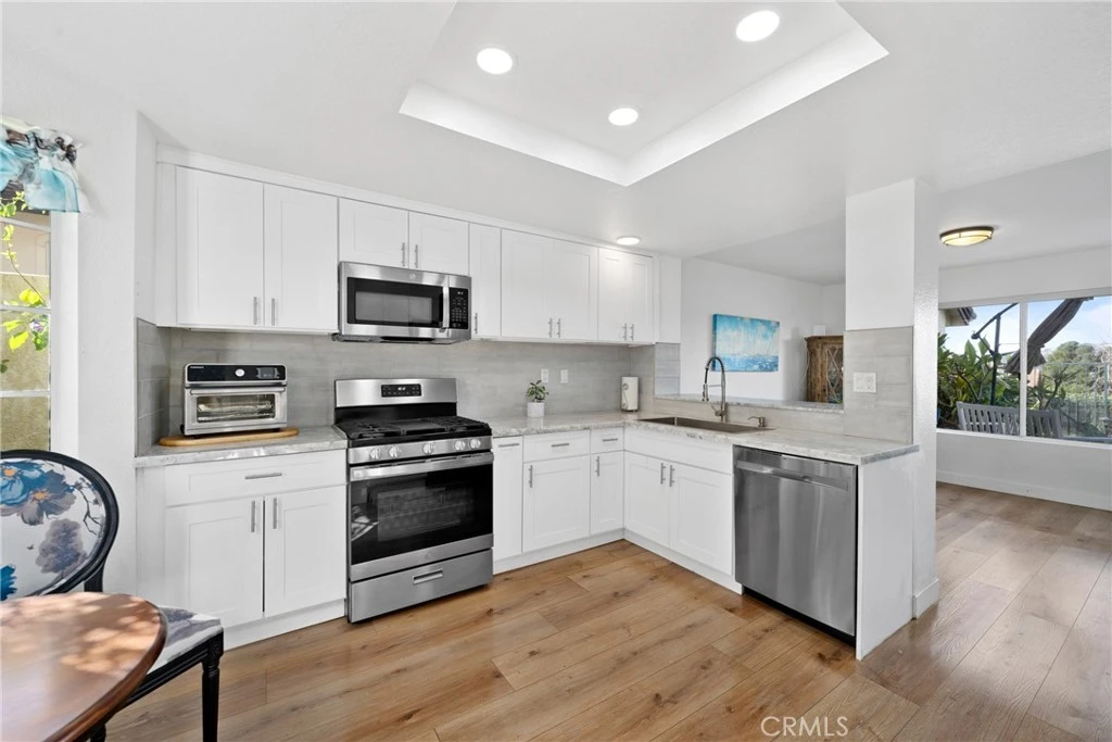 Amazing Sunset Views!!! Welcome to 27377 Paseo La Serna, a beautifully updated home located in a private cul-de-sac in the sought-after Mesa Vista community of San Juan Capistrano. This turnkey 2-bedroom, 2.5-bathroom residence offers the perfect combination of modern comfort and coastal charm, featuring stunning views of the historic Mission San Juan Capistrano, spectacular sunsets, and refreshing coastal breezes. As you enter, you’re greeted by a private courtyard that provides a tranquil space for relaxation and outdoor entertaining. Inside, the home boasts an open and airy layout filled with natural light, highlighting spectacular views of the Mission. The recently renovated kitchen is a true centerpiece, featuring silver and white natural marble countertops, sleek stainless steel appliances, recessed lighting, and wood grain luxury vinyl plank flooring. A bright breakfast nook sits just off the kitchen, offering the perfect spot for your morning coffee while basking in the sunlight. The kitchen opens seamlessly to the dining area, which has room for barstools on the opposite side of the kitchen sink. From the dining area, enjoy breathtaking views down to the Basilica in downtown San Juan Capistrano. The adjoining family room is anchored by a gas fireplace, providing a cozy ambiance, and offers direct access to the backyard where unobstructed views await. The spacious master suite includes two large closets and an en-suite bath with dual sinks and ample countertop space. The second bedroom also features a large closet and its own ensuite bathroom, ensuring comfort and privacy for all. The home also includes a convenient main floor powder room and a laundry room with direct access to the two-car garage offering plenty of storage and parking. Mesa Vista offers a peaceful, community-oriented atmosphere, with access to three pools and spas, as well as easy freeway connections. You’ll be just minutes away from top-rated schools, shopping, hiking trails, world-class beaches in Dana Point and San Clemente, fine dining, equestrian facilities, San Juan Hills golf course, and the vibrant historic downtown area of San Juan Capistrano. Don’t miss your chance to own this stunning home—your perfect home in a perfect location. Welcome home!