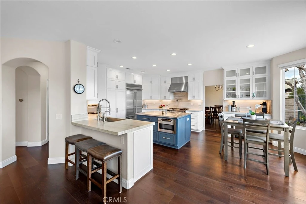 Welcome to this beautiful home in the highly sought-after Gated San Juan Hills Estates! Private & Peaceful Hillside Views!! This home has been extensively remodeled, & is light and bright, featuring an open floor plan and countless amenities! The perfect place to relax or entertain. Upon entering the home you are greeted with hardwood floors throughout, high ceilings, large living and dining room, a Delightful Chef's kitchen with a large stainless steel countertop island, with built in appliances, an espresso cocktail station with bar refrigerator, microwave drawer, warming drawer, pot filler, prep sink, and a water system throughout the kitchen. Master bedroom is expansive with sitting area, while also featuring his and hers walk-in closets & closet organizers. Custom built in cabinets throughout the home. Some key features of the house include a downstairs bedroom with an adjacent full bath, and walk-in shower, custom limestone fireplace, 3 car tandem garage, quiet and peaceful front yard and back yard with relaxing views. Easy access to Golfing, Walking, Hiking and Biking Trails from the neighborhood. Easy access to Los Rios District and bike to the beach within minutes.