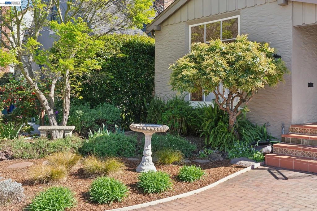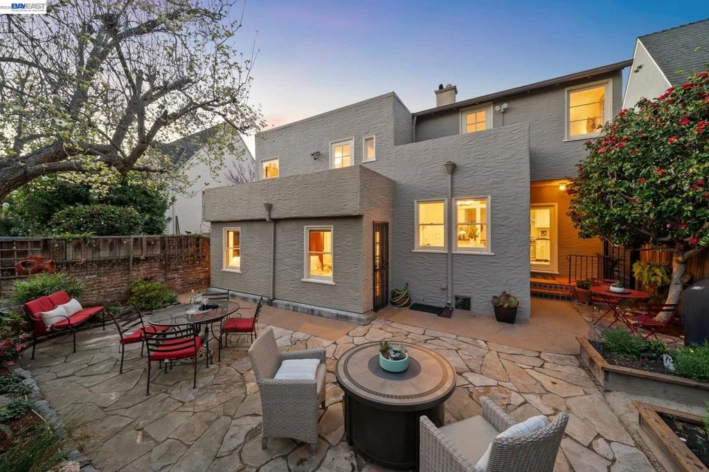 This 1938 Spanish-style gem on a quiet street features arched doorways, floor-to-ceiling living and dining room windows, a stone-accented fireplace, stucco walls, hardwood floors, wrought-iron railings, and a balcony off of each bedroom. Thoughtful updates add comfort throughout, including a chef’s kitchen with gas range, stainless steel appliances, butcher block island, ample storage, and a dining nook overlooking the lush backyard. Nestle into the ground-floor den, which offers patio access, a stylish full bath, and laundry. Upstairs, three light-filled bedrooms share a beautifully tiled full bath. San Leandro is a gardener’s delight! Revel in the fenced, landscaped patio, with plenty of space to dine, work and entertain amidst pollinator-friendly plants and a charming fountain. An attached garage provides storage, workshop, or workout space, plus ample off-street parking. Located on tranquil Pala Avenue yet so close to local favorites such as Paradiso Restaurant, Zocalo Cafe, and Sprouts Market. Wonderful location for commuting, whether on BART, about a mile away, or by highway to Berkeley, San Francisco, Silicon Valley, and beyond.