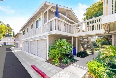 Welcome to this cozy and affordable home, nestled in a secure gated complex on a quiet street. Conveniently located near local freeways and within walking distance to the BART station, this home offers the perfect mix of tranquility and accessibility. Inside this second-level unit, you’ll find an open floor plan with laminate and tile flooring, creating a practical and inviting living space. The kitchen features tile countertops, ample cabinet storage, and a functional layout perfect for meal preparation. A sliding glass door fills the space with natural light and leads to a charming patio—great for relaxing, adding greenery, or accessing the extra storage closet. The unit includes a laundry closet with a washer and dryer for added convenience. Both bathrooms are updated with modern cabinetry, sleek countertops, and marble flooring. The master bedroom features a walk-in closet, offering plenty of storage. You’ll also enjoy two assigned parking spaces, one of which is covered. This delightful home is a wonderful opportunity to settle into a space that feels truly yours.