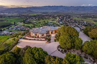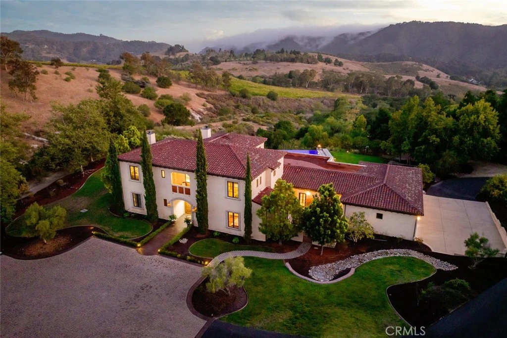 Tucked behind the gates of Bassi Ranch in the serene Avila Valley, this extraordinary property combines privacy, luxury, and timeless Tuscan-inspired architecture. Entering the gated community and turning down the private driveway, the remarkable views are sure to capture your attention. The property is recessed below street level, the residence is hidden from view, offering privacy while framing sweeping views. The home sits on a 3-acre parcel with additional land for exclusive use of this property for equestrian or agriculture. The home has exquisite amenities such as pre-paid solar and battery a backup system, infinity edge pool, fully landscaped and a spacious 4 car garage. A grand motor courtyard welcomes guests with room for over 14 vehicles. The custom floor plan provides the primary suite, a large office, a guest suite accessing the large, secluded courtyard and all living areas on the entry level to provide easy living. The house offers an extravagant entry with two story ceilings. The living room provides grand ceilings with wood beams and sprawling views of the valley and rolling hills. It also includes a wood burning fireplace and surround sound. The chef’s kitchen, designed for both function and beauty, has dual islands, double ovens, two sinks, two dishwashers, striking marble countertops, and space for everyone to cook and congregate together. The kitchen has beautiful picture windows overlooking the scenic Avila Valley and infinity pool which showcases two fire pits, speakers and ambient lighting. The kitchen and living room flow out into the back yard, where the heated infinity pool and spa overlook the horizon and surrounding valley views. The outdoor patio includes a built-in BBQ and sink. The partially covered patio area has built-in heaters. The primary suite is a sanctuary with an adjoining office, a large walk-in closet, and a spa-worthy bathroom. The shower features triple shower heads and a built-in bench. The primary bedroom leads to a private outdoor patio, adjacent to the pool and back yard. The spacious dining room is adjacent to the kitchen and opens to the private side patio. Upstairs provides a large den with sweeping views and two large storage rooms. It also has a deck to relax or greet your visitors. The two wings on the upper-level offer 4 total bedrooms and 2 guest bathrooms designed in a jack and jill orientation for ease and convenience. This estate offers true elegance and showcases the essence of luxury living.