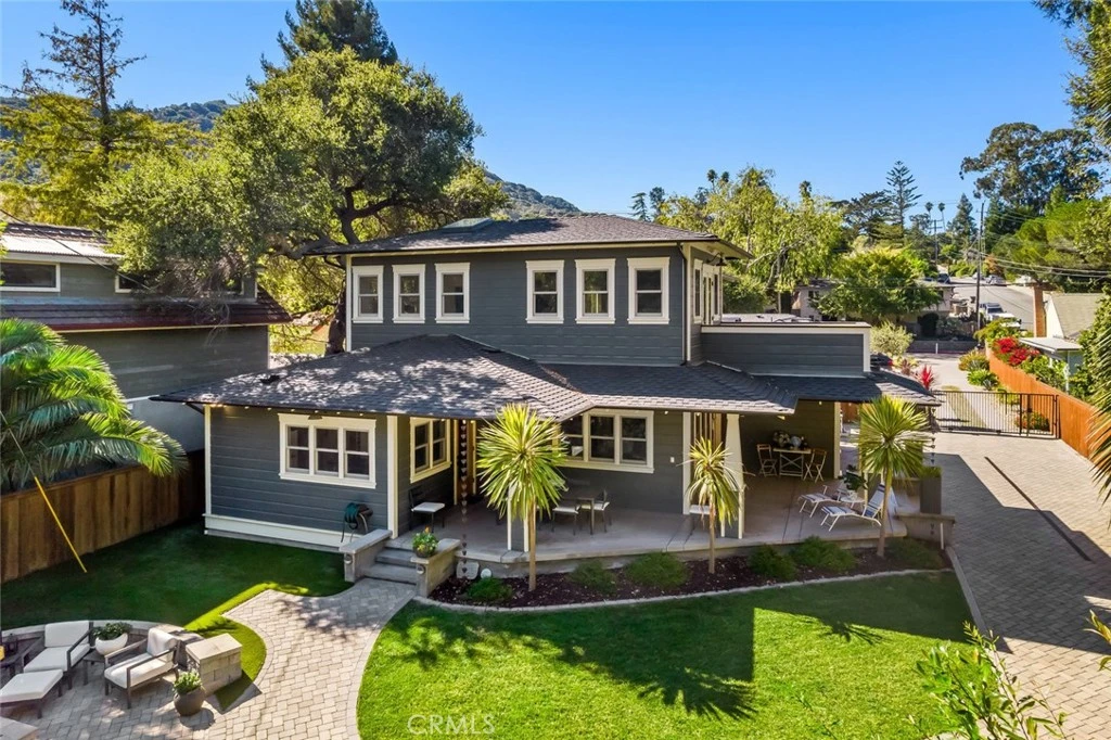 Tucked privately off Broad Street in San Luis Obispo’s coveted Anholm Tract, this stunning custom-built Craftsman home offers a rare blend of timeless design, thoughtful craftsmanship, and modern smart-living in a tranquil, creekside setting. Built in 2017 with meticulous attention to detail and upgraded since, this 3-bedroom, 2-bathroom home is a private retreat just minutes from downtown yet feels a world away. A sunlit open floor plan is wrapped in warm Douglas Fir floors, solid core doors, and rich woodwork throughout. The heart of the home is the chef’s kitchen, featuring soapstone countertops, a farmhouse sink, walk-in pantry, custom cabinetry, and top-tier appliances including a Bluestar commercial range and Bosch silent dishwasher. The space flows effortlessly into the dining and living areas, creating a perfect layout for both daily living and entertaining. Upstairs, the primary suite is a sanctuary with its own private deck overlooking lush creekside greenery. Inside, you'll find a full walk-in closet with custom built-ins and a recently renovated spa-style bathroom, a soaking tub, dual sinks, and a luxurious shower with dual shower heads. Downstairs, two additional bedrooms and a beautifully appointed guest bath offer comfortable accommodations for family or guests, while a spacious laundry room with generous storage keeps life organized. Outdoor living is just as intentional, with a deep wraparound porch, backyard BBQ pad plumbed for gas, a built-in infrared heater at the back deck, a professionally landscaped yard, and smart systems including WiFi-controlled irrigation, multicolor LED lighting, and drainage infrastructure that protects and enhances the property’s natural setting. A herringbone paver driveway leads to the attached two-car garage, outfitted with Clopay Douglas Fir doors and smart-phone enabled openers. Behind the scenes, enjoy peace of mind and energy efficiency with solar power, spray foam insulation, a high-efficiency HVAC system, tankless hot water with recirculation, and a whole-home automation system that controls Sonos audio speakers in most rooms, garage, outside patio and decking. Integrated Lutron lighting and Clearview exterior security cameras, and a Nest programmable thermostat add value. With its quiet setting, timeless design, and seamless blend of comfort and technology, this is more than a home — it’s a retreat crafted for modern living in one of San Luis Obispo’s most cherished neighborhoods.