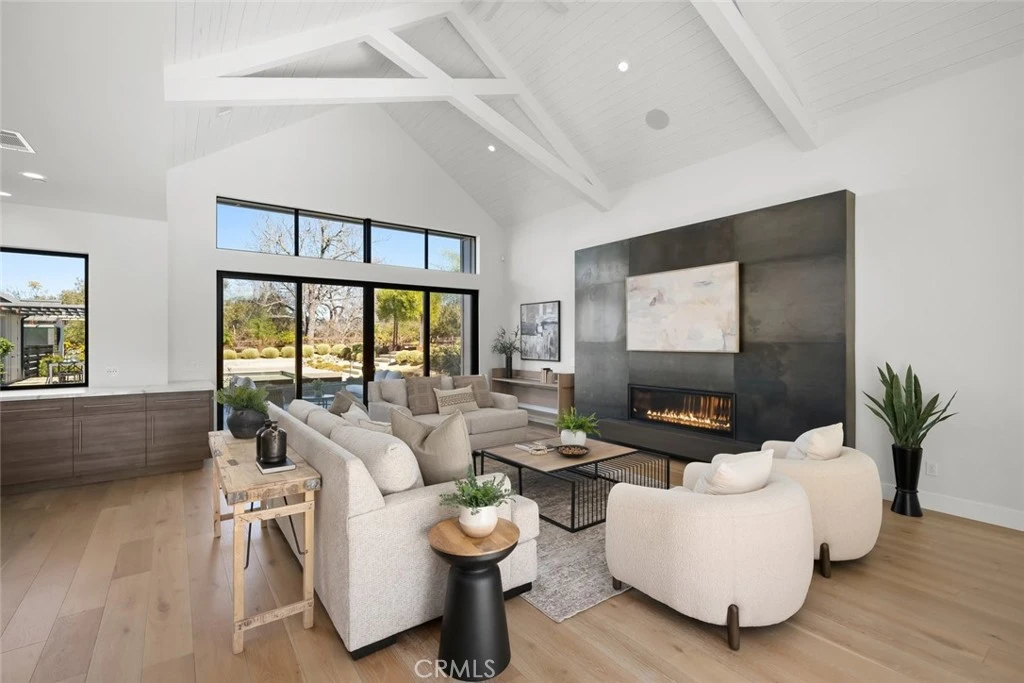 An exceptional luxury retreat within the exclusive gated community of Jespersen Ranch, this modern farmhouse estate sits in a private enclave of just five premier homes in San Luis Obispo. Positioned on over one acre of resort-style grounds with panoramic views of rolling hills, vineyards, and mountains, the property offers unmatched serenity while remaining only minutes from the vibrant heart of downtown SLO. Inside, the home showcases an open, light-filled floor plan with soaring cathedral ceilings, light-washed hardwood floors, and expansive picture windows that frame the surrounding natural beauty. The main-level primary suite serves as a tranquil sanctuary with dual walk-in closets, a spa-inspired bath featuring a soaking tub and large walk-in shower, a two-way fireplace, and private patio access. Three additional ensuite bedrooms on the main level, one with own entrance from exterior, ensure comfort and privacy for family and friends alike. At the center of the home, the chef’s kitchen makes a statement with a massive island, Wolf range, built-in refrigerator, two dishwashers, a butler’s pantry, coffee station, and a formal bar complete with dual wine refrigerators. Everyday living is made effortless with a spacious mud/laundry room and an oversized three-car garage equipped with extensive cabinetry. While additional features like a main floor library office, an upstairs game room with spectacular views, and accessory building with workout studio add to the lifestyle. Completing the property is a fully detached, 601 sq ft guest house—perfect for extended stays, visiting guests, or a private creative or work space. The outdoor living experience evokes a private luxury resort, highlighted by a heated custom pool and spa with fountains and integrated lighting, a fully equipped outdoor kitchen with built-in BBQ, a heated pergola, a dramatic fire feature, built-in speakers, and a dedicated bocce court. Lush lawns, curated gardens, fruit trees, grapevines, and a generous pet enclosure enrich the landscape. Modern energy and security features include owned solar panels, four Tesla backup batteries, Tesla EV chargers, energy-efficient systems, outdoor surveillance cameras, and a comprehensive alarm system. Thoughtfully designed and flawlessly executed, 280 Jespersen Lane embodies the essence of California luxury living—private, polished, and absolutely extraordinary.