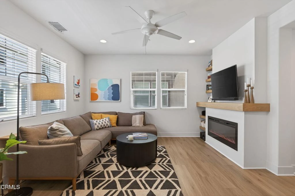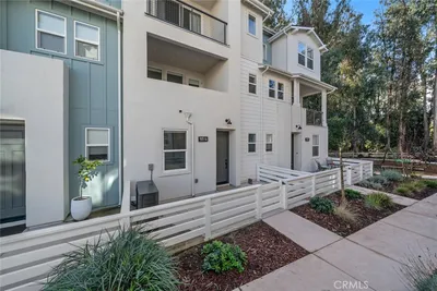 Location, Location, Location!This like-new, upgraded condo in the highly desirable Avivo community of beautiful San Luis Obispo checks every box--and more. With only one other unit in the building and just a single shared wall, this rare end unit offers exceptional natural light, livability, and privacy. With mountain views and quietly positioned at the back of the complex, it feels like your own private retreat.Step inside to an open, airy floor plan where sunlight fills every room. Unique to this home, the spacious living room boasts a modern linear fireplace with a custom white oak mantel and shelving. The kitchen features sleek quartz countertops, stainless steel appliances, recessed lighting, and a welcoming breakfast bar that flows effortlessly into the dining area. More custom built-ins--including a desk, shelving, and added cupboard storage--create a flexible and functional space for work or everyday living. Enjoy your own private balcony for easy indoor-outdoor living. Additional upgrades include whole house air conditioning, Coretec Pro series oak flooring on the main level, kitchen pull out drawers and upgraded cabinet hardware throughout.Upstairs, the spacious primary suite offers a private en-suite bathroom and wonderful natural light. The second bedroom is equally bright and inviting, with a full bathroom conveniently located just across the hall. A main-level half bath adds convenience for guests.The Avivo community offers inviting BBQ and gathering areas--perfect for relaxing or connecting with neighbors. All of this is ideally located near shopping, dining, and the best of San Luis Obispo living.A rare opportunity to enjoy comfort, convenience, and modern style in one of SLO's most sought-after communities.