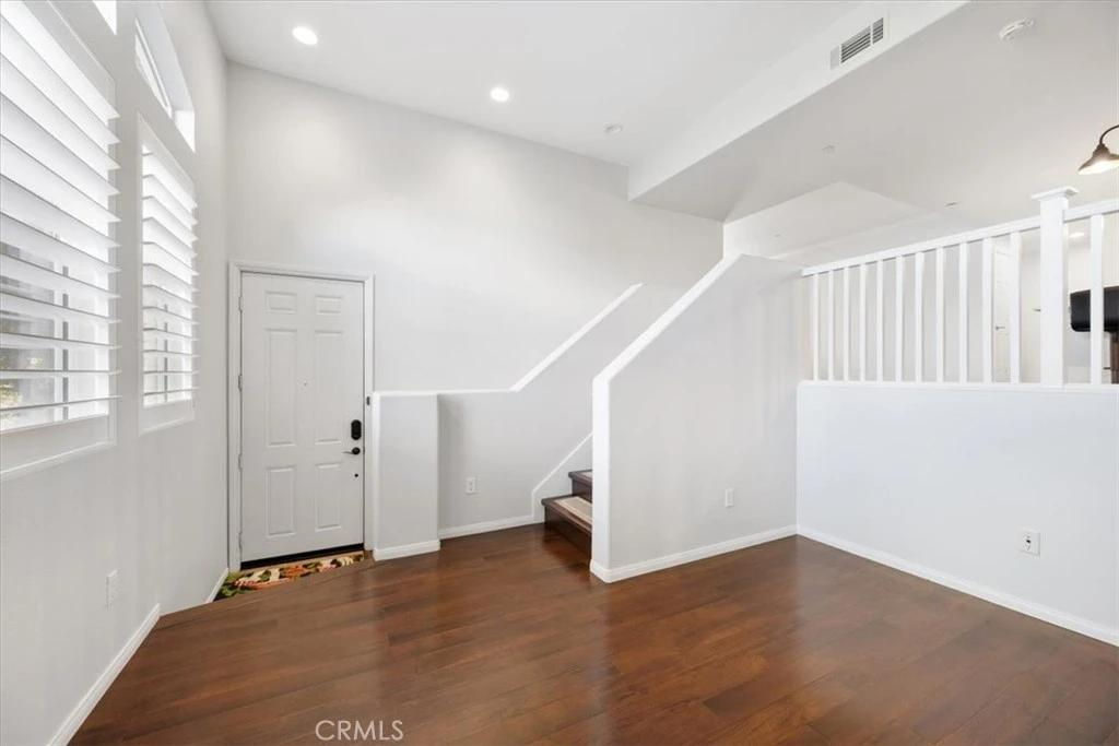 A unique split-level layout places the main living areas, kitchen, dining space, and all bedrooms and bathrooms slightly elevated above the entry and bonus family room, providing all the living space on one level. The home looks out over nearby hills and open space, offering a pleasant sense of privacy and openness. Designed with efficiency in mind, the floor plan maximizes usable space throughout. Extensively updated, the home features a fully remodeled kitchen with cabinetry, updated countertops, modern lighting, and pantry storage. Laminate flooring runs throughout the living areas, complemented by brand-new carpet in the bedrooms. Plantation-style shutters have been installed throughout, and the dining room fixtures have been upgraded. Both bathrooms have been remodeled, including a primary bathroom with dual sinks and new shower. Major appliances are included: refrigerator, washer, dryer, dishwasher, and gas stove. The garage offers 220-volt power. HOA covers landscaping, a gym, and clubhouse.