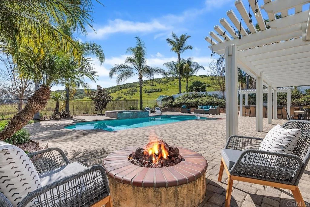 Experience single-story living with seamless indoor-outdoor flow on a flat and usable, nearly ½ acre lot in San Marcos. The entry opens to a bonus living area that highlights the home’s thoughtful design, flanked by a home office with built-in desk on one side and a formal dining or flexible space on the other. The entertainer’s kitchen features a 6-burner gas range and large center island all open to the great room with a breakfast nook overlooking the expansive backyard. Enjoy the outdoor retreat with a solar heated pool and spa, built-in BBQ island, fire pit, dining patio covered with a durable metal pergola and market lights, garden beds, and a gated dog run. The primary suite is positioned on its own wing of the home, offering direct backyard access, and a remodeled bathroom with dual sinks, a soaking tub, and a large glass-enclosed shower. Secondary bedrooms are located on the opposite wing of the home, each with its own en-suite bathroom, creating a practical and private layout. Additional features include A/C, recessed lighting throughout, multiple sliding glass doors, vinyl fencing, a three-car garage with new doors, laundry room with sink and no HOA. Nearby Twin Oaks Golf Course, Cal State San Marcos, Kaiser and Palomar Medical Centers and more. Zoned for Twin Oaks Elementary, Woodland Park Middle, and Mission Hills High, this home offers a serene suburban setting while remaining close to shopping, dining, and everyday conveniences. Buyer and buyer's agent to verify all in MLS prior to COE.