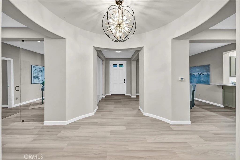 Tucked into a quiet pocket of San Marcos and perched at the top of a peaceful cul-de-sac, this completely remodeled residence offers an exceptional blend of refined design, privacy, and elevated indoor-outdoor living. Far from congested areas, the setting feels spacious and calm, surrounded by open skies, gentle hills, and established homes. The home, situated on an elevated lot with long sightlines, enjoys abundant natural light and panoramic views that change throughout the day. The surrounding streetscape reflects pride of ownership, with mature landscaping and generous spacing between homes reinforcing the relaxed residential atmosphere. Thoughtfully reimagined, the 3,153 sq ft open-concept layout is designed for both comfort and versatility. The expansive great room anchors the home, flowing seamlessly into the exquisitely designed kitchen and bar areas tailored for luxury living and effortless entertaining. These spaces serve as a natural gathering point, combining high-end finishes with functionality and style. Multiple areas throughout the home offer unique flexibility to suit a variety of lifestyles, including dedicated spaces ideal for a private office, gym, or creative studio. Enhanced with privacy glass to maintain openness while allowing separation when desired. Expertly layered lighting throughout the home creates a warm, candlelight-like ambiance in the evenings, adding a romantic and inviting feel that elevates everyday living. Set on an approximately 20,000 sq ft lot, on one of the largest on the cul-de-sac, the outdoor spaces invite both quiet mornings and evening gatherings. Elevated on a hill, the property enjoys exceptional privacy, serene surroundings, and a resort-like atmosphere rarely found in this area. Every detail of the renovation reflects careful craftsmanship and intentional design, resulting in clean modern lines, a refined aesthetic, and a seamless balance between sophistication and livability. The home feels distinctive, offering a living experience that stands apart from others in the neighborhood. Ideally located near dining, shopping, fitness options, and daily conveniences, with easy access to coastal destinations and downtown San Diego, this property exemplifies one of the most enduring principles in real estate: LOCATION, LOCATION, LOCATION. In one of San Marcos' most desirable neighborhoods, this home boasts a spacious, light-filled, private, and timeless setting, and is truly one of a kind.