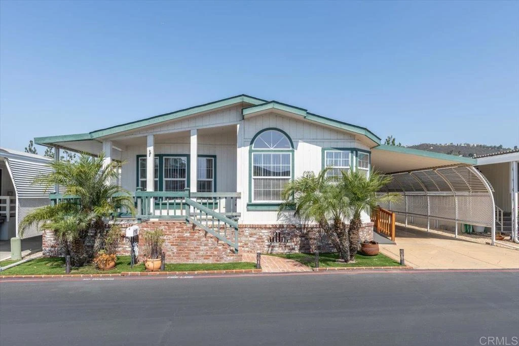 Own your own land & home! No space rent or land lease! 55+ resident owned community! Home has a recorded 433A and therefore qualifies for Fannie Mae, FHA, Reverse Mortgage, and VA financing! Handicap friendly ramp for easy access. This home boasts an open floorplan with lots of natural light! Big Island Kitchen with cheerful breakfast nook area and large pantry with pull out shelves. A formal Dining room is open to a great room style Living room. Two guest bedrooms, one features a murphy bed. Ceilings fans in every room plus lots of solar tubes / skylight for plenty of natural light! The Primary Suite offers a big walk in closet and double sinks. The laundry room features a deep sink and extra storage space. The exterior boats an extra wide carport with privacy screen and stamped concrete, a storage shed, and a lovely wrap around covered deck for relaxing and entertaining. All appliances are included "as is." Madrid Manor is a resident owned, 55+ community w/ a low monthly HOA fee of $222 and plenty of social activities for those seeking an active lifestyle with numerous amenities that include a clubhouse, a Waterfall connecting two ponds and landscaped with walking and hiking trails; pool/spa, BBQ area, tennis/pickle ball courts, ping pong, putting greens, billiard room, card room, library, gym, shuffleboard, korn-hole, car wash area, a studio for dance classes and small meetings, plus a large RV lot for vehicles/boats/trailers and more! Located close to shops on El Norte, as well as Costco, Walmart and Kohls on Nordahl.
