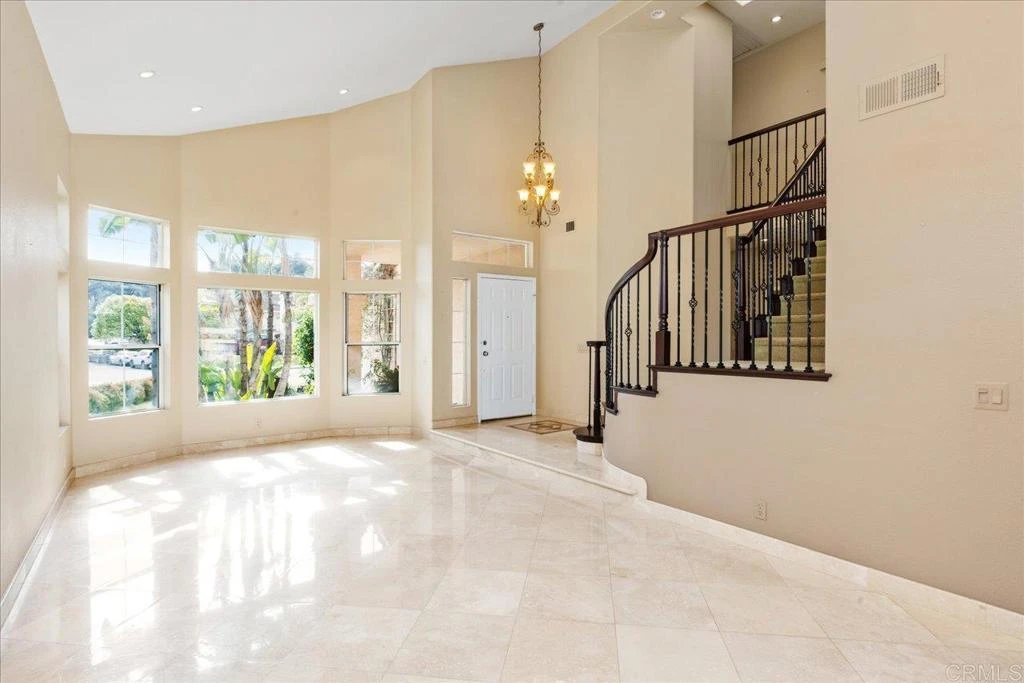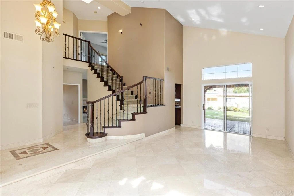 Tucked into the quiet curve of a cul-de-sac, this San Marcos residence offers the kind of rare, expansive "breathing room" that is nearly impossible to find in modern developments. Situated on nearly a quarter-acre with the freedom of no HOA or Mello-Roos fees, the property is a private sanctuary. The massive backyard is an orchard of mature orange, lemon, peach, and apple trees, offering a secluded space for children to play or for hosting long summer barbecues under the gazebo. For the hobbyist or the multi-vehicle family, the three-car garage and extra-long driveway provide a dedicated workspace for projects and plenty of room for oversized trucks. Weekend life here is effortlessly active, with both Nob Hill Park and Arboles Park just a short stroll away, providing perfect local spots for afternoon playdates and neighborhood walks. The interior of the home is designed for both impressive first impressions and comfortable daily living, beginning with a grand slate-tiled entrance and a dramatic circular redwood staircase. The heart of the home is a chef-inspired kitchen where cherry cabinetry and granite countertops meet high-end stainless steel appliances, all centered around a functional island that’s perfect for pancake mornings or evening homework sessions. This space flows naturally into a cozy den, where a marble wood-burning fireplace creates a warm, grounded atmosphere for family movie nights. The floor plan is remarkably flexible, offering three dedicated bedrooms plus a versatile optional fourth bedroom, ideal as a quiet home office, a dedicated playroom, or a guest suite. Upstairs, the primary retreat serves as a quiet escape from the day’s hustle, featuring custom built-ins and views of the surrounding mountains. Beyond the property lines, the location is a masterclass in convenience for a busy family. The morning routine is simplified by being within easy walking distance of top rated Knob Hill elementary school, while the practicalities of life (like quick trips to Costco and Walmart or dinner at a variety of nearby restaurants) are less than 1 mile away. This home strikes a unique balance, offering the peace and privacy of an established, oversized lot with the modern accessibility of a central San Marcos location. It is a property that doesn’t just offer a place to live, but a backdrop for a lifestyle where privacy, space, and community convenience all coexist.
