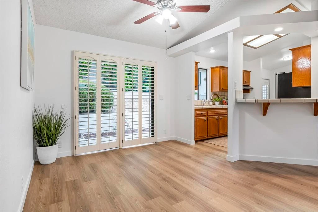 Taking back up offers**Home Sweet Home*beautiful new woodgrain/laminate flooring thru out*plantation shutters*generous side private patio*culdesac location*no neighbors behind*front & side views*super elevation on popular west side of the gated community*Freshly painted interior & exterior*breakfast nook off kitchen exits directly to the side yard*vaulted ceilings make floorplan appear boasting a beautiful open floorplan*custom primary closet makes for the best storage ever*OWN THE LAND & PROPERTY on tax rolls*constant ocean breezes only 6 miles to the ocean*stucco exterior with tile roofs, very popular neighborhood* gated*secure*move in ready!! RETIREMENT AT IT'S FINEST