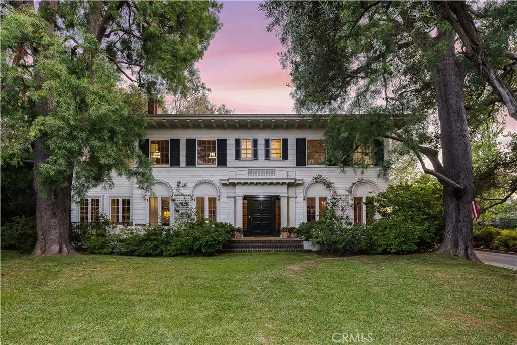 This classic Colonial Revival built in 1922 was one of the original residences built on Old Mill Road in San Marino under the personal direction of Henry E. Huntington to fulfill his dream of surrounding his famed estate and gardens with “the most beautiful residential park in California.” Tucked behind a screen of foliage, this private estate offers the ultimate in privacy as it sits majestically atop a knoll overlooking expansive lawns and gardens that bloom year-round. The large front terrace with balustrade spans the front of the home and frames the front columned portico. Stepping into the formal entry with grand central staircase you’re drawn to the sophisticated living room with elegant fireplace and adjoining library. Both rooms offer views and access to the backyard and gardens through banks of French doors ideal for entertaining. The dignified dining room features French doors opening to the front terrace. A butler’s pantry provides a bar and private staging area off the kitchen. A sunny breakfast porch abuts the kitchen and leads out to the charming patio. To the back of the house is a private suite perfect for nanny’s suite or convenient children’s playroom. Upstairs, at the top of the central staircase, a generous landing opens to three large ensuite bedrooms, a guest room and an additional bedroom with fireplace being used as a sitting room. A balcony off the landing offers the perfect place to enjoy a morning cup of coffee overlooking the sprawling back yard. The covered back porch of the home opens to the extensive back lawns featuring flower gardens, a dining gazebo, children’s playhouse and swing set, tennis court with viewing pavilion and a large swimming pool with jacuzzi. Adjoining the pool area is a charming cabana offering his and hers shower and restrooms, and large open area with wet bar for entertaining and games. Off the cabana is a bonus room used as a private office. At the back of the property is an area with raised garden beds and potting shed for the gardener in you. And finally, the piece de resistance for the car fanatic is the amazing 7-car garage featuring a lube pit. The ultimate collectors dream! This historic home is on the market for the first time in 60 years. Don’t miss your chance to own this spectacular estate!
