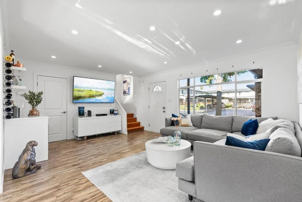 Welcome to 1640 Marina Court, Unit F, a sophisticated sanctuary nestled in the heart of San Mateo. This elegant residence boasts a harmonious blend of comfort and style, offering 1,054 square feet of thoughtfully designed living space. With 3 spacious bedrooms and a beautifully appointed bathroom, this home provides a serene retreat for relaxation and rejuvenation. Step inside to discover a light-filled living area, where central AC ensures year-round comfort. The open-concept design seamlessly connects the living and dining spaces, leading to a private outdoor patio that invites you to savor tranquil momentsa perfect setting for alfresco dining or peaceful morning coffee. The upstairs offers enchanting water views visible from all rooms, adding a touch of serenity to your everyday life. The kitchen is equipped with modern conveniences, including an in-unit washer and dryer, ensuring effortless living. Residents will appreciate the array of amenities, such as a sparkling pool, a well-equipped gym, and guest parking for visitors. The community welcomes pets, allowing you to enjoy the companionship of your furry friends. Experience the epitome of elegant living at 1640 Marina Court, Unit F, and Indulge in the beauty and tranquility of this exceptional home.