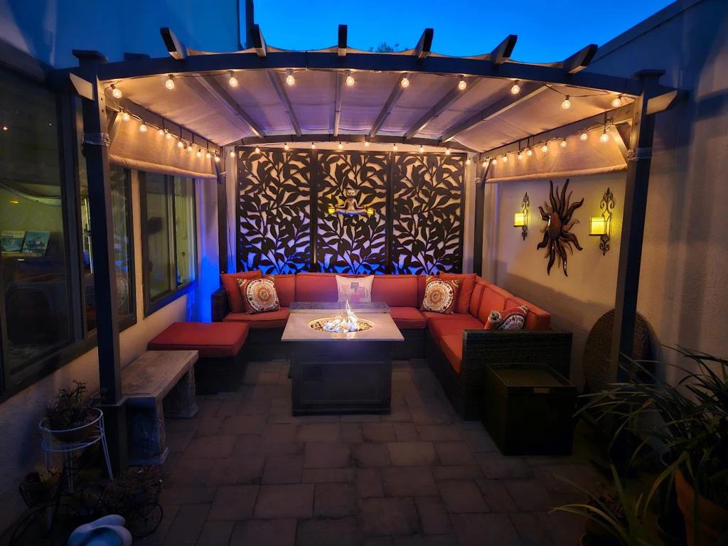 This pristine Mediterranean townhouse-style home offers bright, airy living with exquisite details & modern conveniences. Step inside & discover a seamless transition through the main level, starting with a well-equipped kitchen featuring abundant cabinets & stainless appliances, perfectly positioned just off the dining area. The great room opens to a charming private patio, ideal for outdoor entertaining & stargazing. The large garden patio features a gazebo, string lights, elegant pavers, & separate seating area. Upstairs, a well-lit landing leads to two bedrooms. The primary bedroom features a new balcony, generous closet space, high ceilings, & a light-filled en-suite bathroom w/ a walk-in shower. The second bedroom offers balcony access & a large walk-in closet adjacent to a fully updated hall bathroom. The full-size stacking laundry is conveniently located on the upper level. The remodeled interior showcases modern laminate & tile flooring, a cozy fireplace, plantation shutters & custom window treatments. Natural light floods the space through skylights, & the South-East facing unit enjoys morning & afternoon sun. Rare direct garage access with built-in storage adds to the convenience. Designed for year-round indoor-outdoor living, this exceptional property is a must-see!