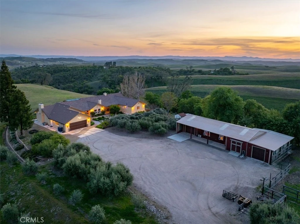 Perched atop 75.97 acres in San Miguel, this gated estate offers an unparalleled hilltop retreat with breathtaking panoramic views spanning from the Diablo Range to the coastal mountains. Thoughtfully renovated in 2014, the 3,888 sq. ft. main residence blends modern comforts with rustic elegance, featuring beamed ceilings, distressed alder hardwood floors, and a striking custom rock veneer wall in the living room. Designed for both comfort and functionality, the home offers three bedrooms, an office, a spacious family room, and a formal living room. The primary suite boasts a large walk-in closet, a dedicated sitting area, and an en-suite bathroom with exquisite Mission Tile finishes. This remarkable property is also a producing olive grove and hobby vineyard, creating an opportunity to embrace the Central Coast’s agricultural heritage. Approximately 200 olive trees flourish on the estate, producing award-winning extra virgin olive oil—earning 10 Gold Medals in 2024 alone. Varietals include Mission, Pendolino, Frantoio, Coratina, Leccino, and Manzanilla. The hobby vineyard, planted with Cabernet Sauvignon and Petite Sirah, has contributed to award-winning wines crafted on-site. Built with energy efficiency in mind, the estate features 39 solar panels, two new HVAC systems (installed in 2022), and a refurbished well (2023). Inside, enjoy the warmth of two wood-burning fireplaces and a gas fireplace in the primary suite, enhancing the home's inviting ambiance. A versatile second building adds additional opportunities for customization, whether as a guest retreat, ADU, or private tasting room. Fully fenced and private, this estate offers the perfect setting to take in the unrivaled natural beauty of the Central Coast. Whether savoring morning coffee in the gourmet kitchen, enjoying a sunset glass of wine on the patio, or stargazing under some of the clearest night skies in the county, this exceptional property provides a seamless blend of seclusion and convenience—just 20 minutes from town.