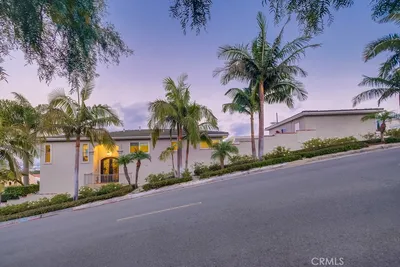 HISTORIC LANDMARK VILLA - Built in 1924 This breathtaking property is a masterpiece of timeless elegance, offering a harmonious blend of historic charm and Mediterranean style. Nestled high above the street on a 10,801 sq. ft. lot, this villa boasts 180-degree views of the ocean, harbor, neighborhood, and surrounding hills. Approach the home via outdoor Spanish steps and step through a magnificent 10-foot curved entry door, an original design from 1924. Once inside, the grandeur of this villa unfolds with floor-to-ceiling windows that open for fresh ocean air and panoramic views. Spanning 3,052 sq. ft., this 4-bedroom, 3-bath home epitomizes spacious California-style living with a Mediterranean flair: *Living Room: A grand space with high-beamed ceilings, large water-facing windows, and French doors leading to a pergola-covered patio. *Private Library: Adjacent to the living room, featuring stunning harbor views, an Italian marble fireplace, and custom armchairs for cozy relaxation. *The library opens onto a wrap-around balcony with breathtaking views. *Dining Room: A ballroom-like setting perfect for hosting, with space to seat 10+ guests. *Kitchen: An expansive white cabinet design with a double oven and 5-burner stove, perfect for culinary enthusiasts. *The Master Bedroom features two large windows with ocean and harbor views, allowing for serene mornings with coastal breezes. *A second upstairs bedroom, currently used as an office, overlooks the charming neighborhood. *Two additional bedrooms on the main floor each feature ensuite bathrooms. *Basement: Fully finished and accessible from the interior, providing ample storage space. *ADU: A convenient Additional Dwelling Unit adjacent to the two-car garage offers flexibility for guests or work. *The villa's outdoor spaces are as captivating as its interior: *Two adjacent back patios, including one covered by a new Pergola. *A tiered garden Palazzo, complete with a large Italian fountain, lush greenery, and a private, gated setting with nearby grass area adds versatility to the outdoor living space. *Unparallel Views of the ocean, harbor, and hills. *Unique architectural elements like a 1924 curved entry door and Italian marble accents. *Ideal for entertaining with indoor and outdoor spaces designed for gatherings. If you appreciate the elegance of historic European-inspired design combined with modern luxury, this villa is a must-see.